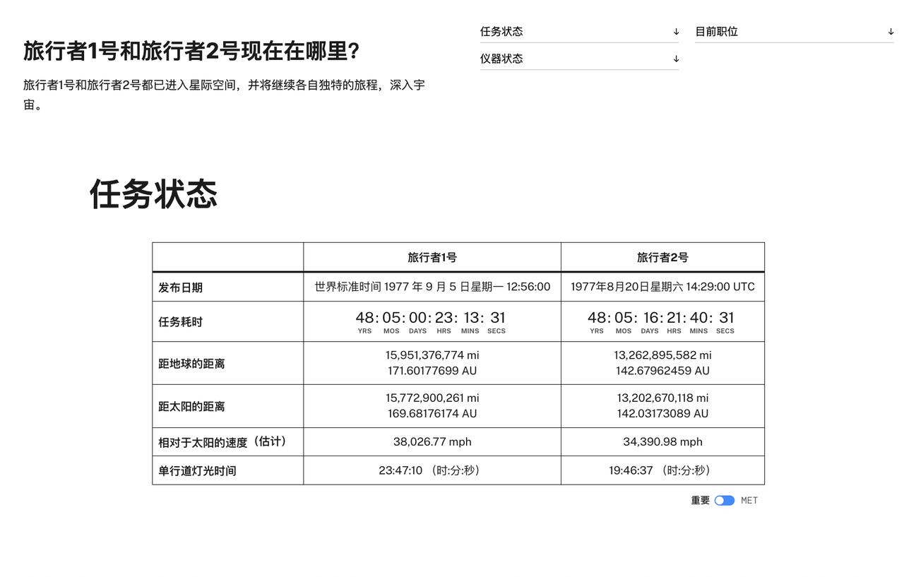 旅行者1号即将抵达距离地球1光日的位置——也就是光在真空里传播整整一天的距离。 真的难以想象,这个发射于近半个世纪前的老古董航天器的部分仪器仍在工作,其深空任务团队的元老早已几经更迭,而它依然顽强地向地球发送着微弱的电波。48年了,这个人类探索宇宙的先驱仍在超服役年限期外向地球问好,这本身就是一个近乎奇迹的存在。不得不说,老美科研人员在深空航天器品质与可靠性上的极致追求。