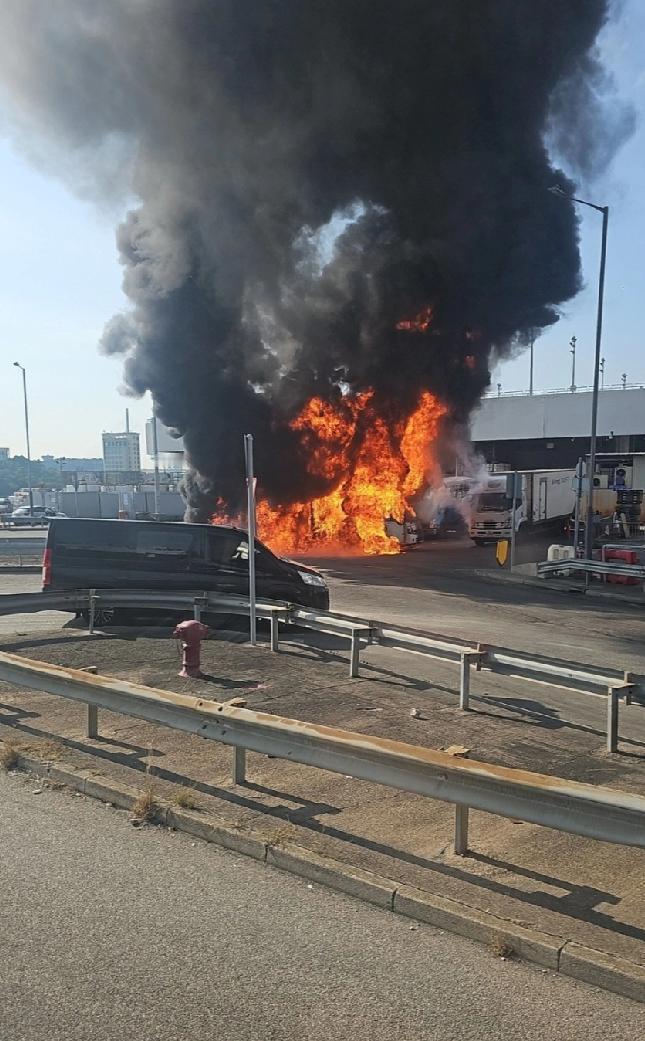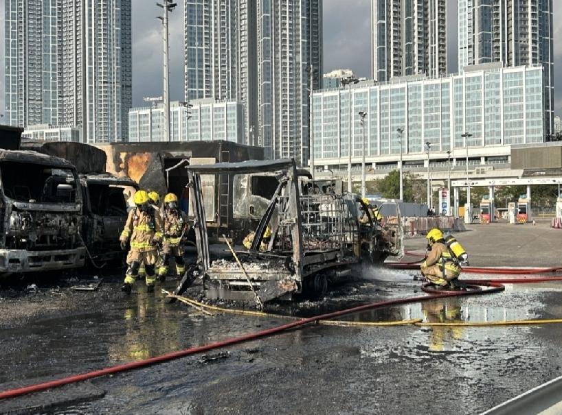 今日(6日)下午3时许,香港警方接获多人报案,深水埗钦州街西38号长沙湾鱼类批发市场卸货区一辆货车突然起火,黑烟冲天,还不时传出爆炸声,随后火势迅速蔓延,波及附近车辆。 消防接报到场后开喉灌救,迅速将火扑灭。经调查,约有7辆车被焚毁,起火原因正在调查中。事件造成2人受伤,一名40岁男子身体15%二级烧伤,包括面、颈及左右手,清醒状态下被送往玛嘉烈医院治疗;另一名46岁非华裔男伤者身体20%二级烧伤,包括头、面、颈、双手及双脚,清醒状态下被送往伊利沙伯医院治疗。 现场可见,有货车严重焚毁,只剩支架,附近数辆货车也受波及。 现场火光熊熊,大量黑烟升上半空,远处清晰可见,整辆货车几近被火海吞噬。
