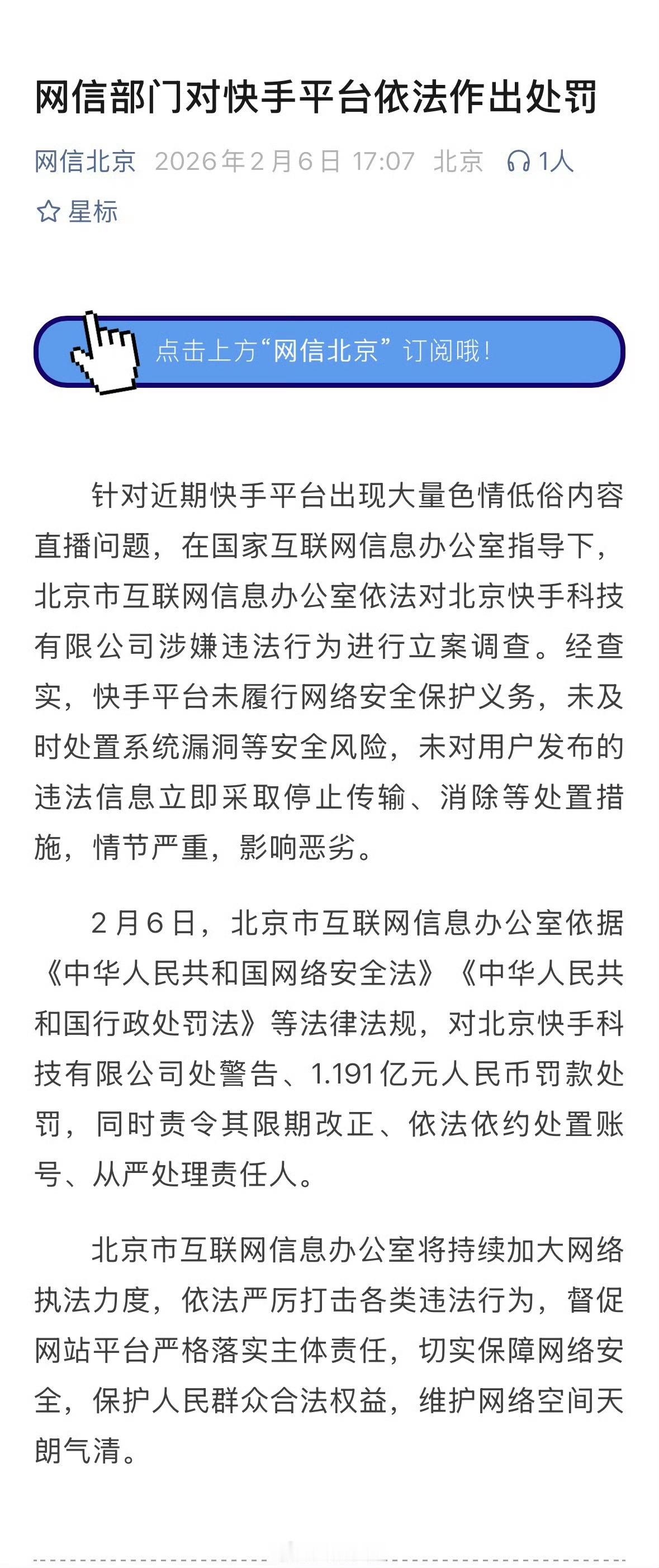快手被罚1.191亿元人民币前段时间快手直播被攻击,变成了色情直播平台,不出意外被网信办处罚了,罚了1.2亿,但是快手也暴涨了大量新用户,这波不知道对于快手来说是亏了还是赚了快手被罚1.191亿元人民币