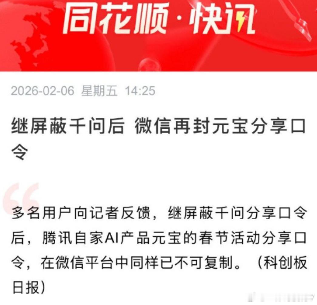 这两家腾讯,阿里在打架,玩战术,36计是哪一计呀都是不讲武德千问都被封了,现在连个分享口令都不给?腾讯,你这是在维护自己的隐私吗?😂