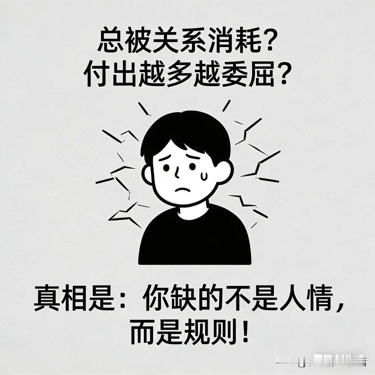总被关系消耗?付出越多越委屈?真相是:你缺的不是人情,而是规则! 无规则的关系,如无红绿灯的十字路口,混乱且危险。 规则划定边界,让人情成加分项;缺了规则,人情便成道德绑架的工具。 建立高质量关系,要先立规矩,再谈感情。 单方付出换不来真心,只养得出“白眼狼”。 你的关系是滋养还是消耗?评论区分享你的故事!点赞收藏,用规则守护真心!