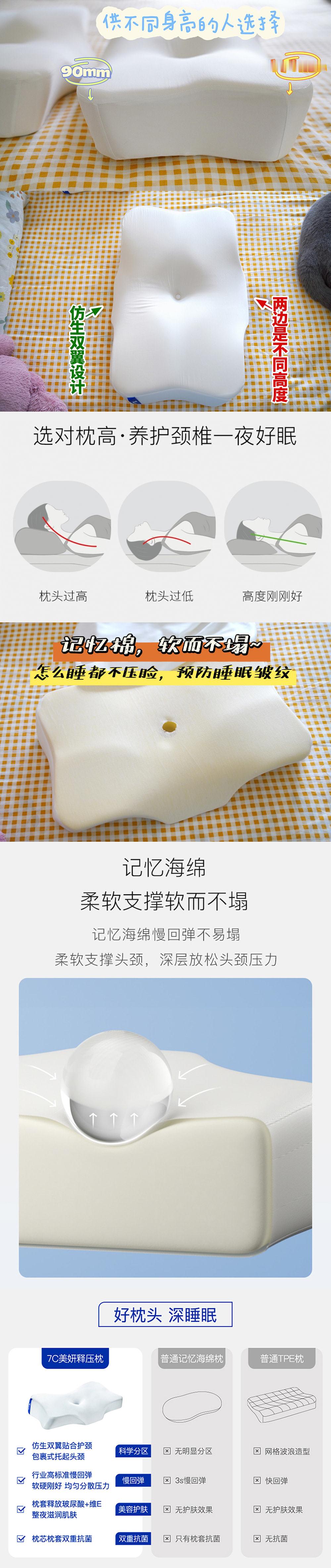 7c美妍释压枕,已经陪伴我三年多,是我睡过zui舒服的枕头~它仰睡.侧睡有不同高度,能包裹+贴合+支撑头颈肩部,平躺颈椎不悬空,侧睡不压肩耳,还能预防睡眠皱纹~U惠quan:网页链接,揪⑤个7c玻尿酸眼罩,12号在转發里开~我之前用过无数个枕头,一直没找到特别舒服的,平躺和侧躺其实是需要不同高度的,有的枕头高度适合平躺,但是翻个身侧躺高度又不够了。侧躺舒服的,平躺又会觉得高,颈椎悬空,翻来覆去得难受,直到遇到这个枕头~长时间用电脑,三天两头脖子肩膀疼的我,用了这个之后,这几年再也没睡落枕过,肩颈都舒服了很多~