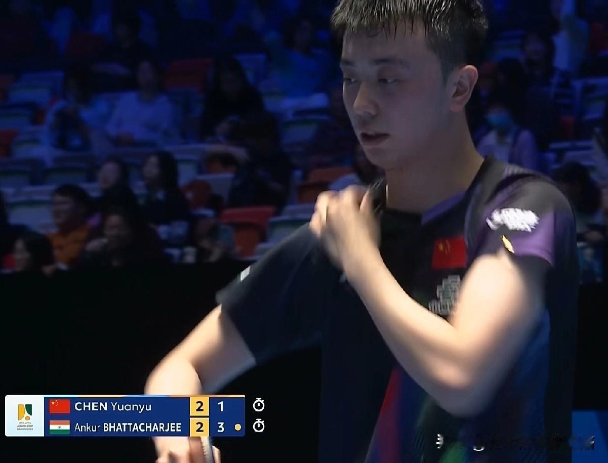 陈垣宇还是输了,小组赛1胜2负。 陈垣宇今天太难了,遇到了大胡子又大吼的安库拉。 第一局陈垣宇就5-11输了,当时就觉得要输了。 没想到第二局陈垣宇艰难扳回一局,第三局也是相同比分13-11险胜,今天场上的加油声很提气,陈垣宇也打出了气势。 第四局还是比分紧咬,打到8-8,陈垣宇把比分拉开打到赛点,又被追到11-11,11-13陈垣宇又输一局,大比分2-2。 决胜局陈垣宇比分落后没能逆转,很遗憾2-3输了第三轮。 陈垣宇小组能否出线,还要等户上隼辅赛完。 图片来自网络侵权可删。