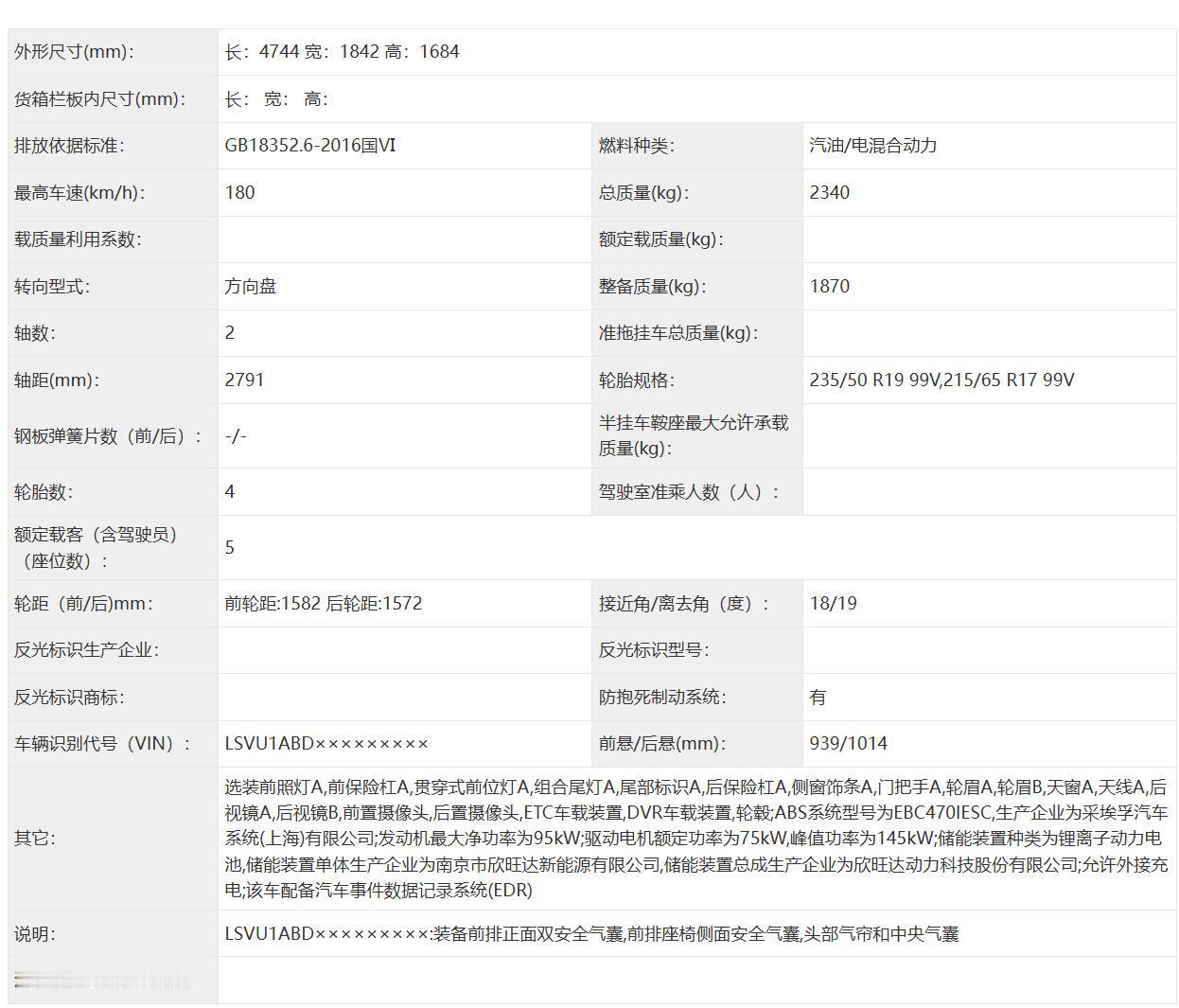 全新途观L PRO越长越科幻了呀 4744*1842*1684mm,轴距2791mm,整体参数和现款差不多 轮毂尺寸由R17/R19两款 接近角/离去角有18/19°,可以进行轻度越野 配备了发动机+电池的组合,使用锂电池储能,欣达旺的电池 感觉上汽大众还是大刀阔斧做了一台不一样的车子出来啊【来自懂车帝车友圈】