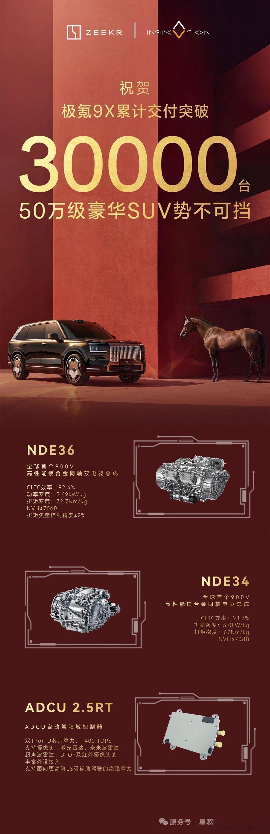 负责吉利电这一块的星驱科技可以说是大功臣了,nde系列的电机也是在机电和威睿合并到星驱后大放异彩的电机,明明是键盘值极高的技术,却不会吹,欢迎大家关注一下星驱科技的官号。看这个cltc效率,这也是为什么900V架构下极氪的产品电耗能下来的原因之一。还有9x用的adcu 2.5rt域控制器,也是星驱自己搓出来的极氪大v聊车极氪极氪9x
