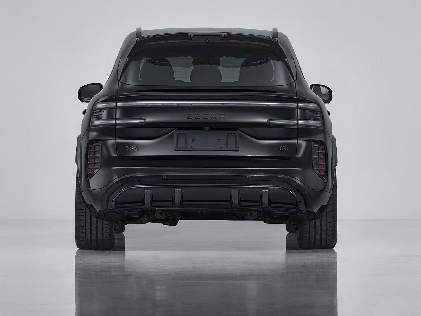 极氪8X 工信部新公告的版本,熏黑前格栅:阵列式线条构成紧绷的弓弦,充满视觉张力;整体轮廓则如一体式铠甲,塑造出坚固的雕塑感。极氪8X最新公布,猜测为三电机的版本通过张力的设计语言,将前脸格栅功能性的散热需求,转化为极具辨识度与力量感的视觉符号。