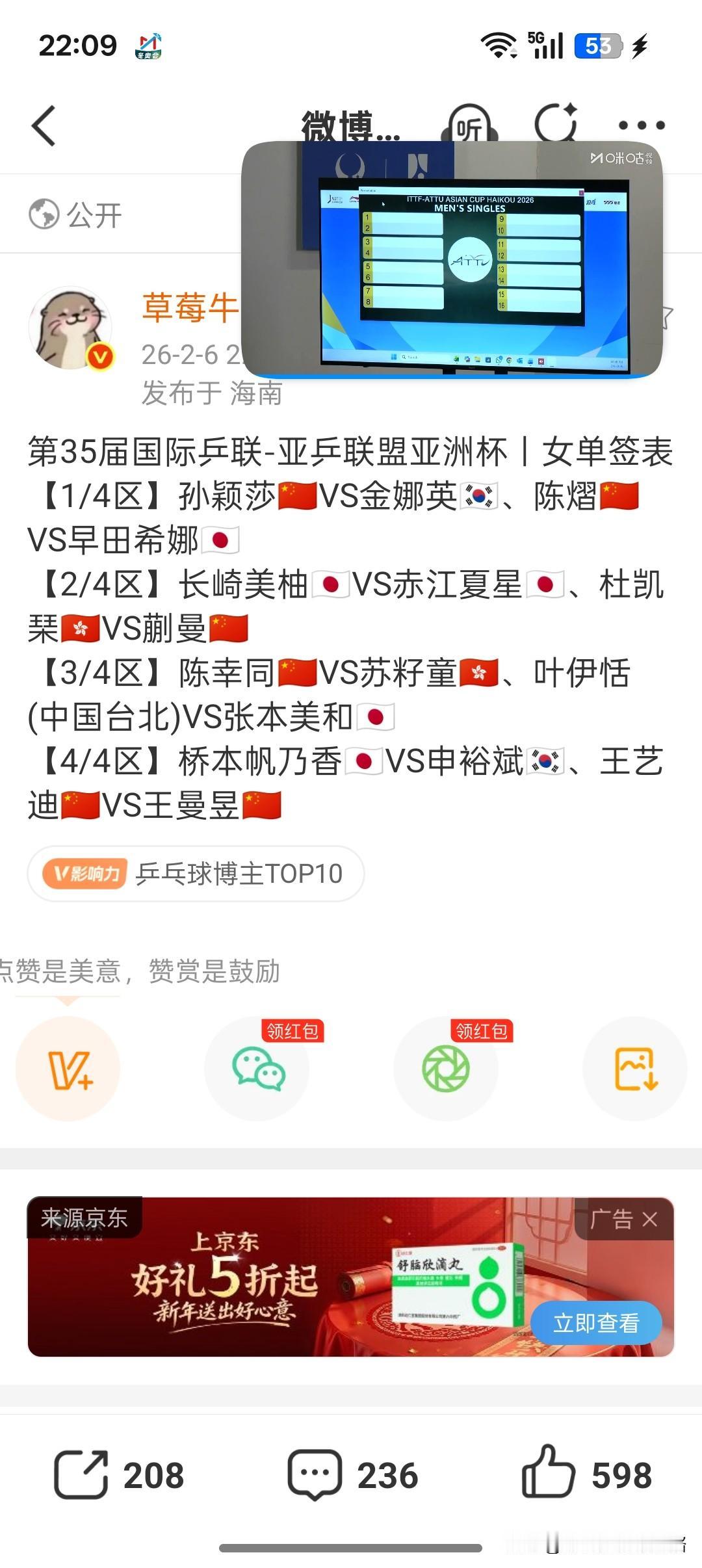 亚洲杯女单签表已出,女队每个签都很硬。 王艺迪好容易出线,第一轮就是内战,而且还是王曼昱,这样看大迪差不多就是一轮。 王曼昱拿下王艺迪,很大可能又遭遇到桥本帆乃香,对王曼昱来说算下下签。 陈幸同很大可能又遇到张本美和,不过同同打张本美和应该没问题。 蒯曼又是抗日,应该和长崎美柚。 孙颖莎如果拿下金娜英以后,下一轮不是陈熠就是早田希娜。 如此看来,女队夺冠之路任重而道远。 加油中国队,期待能会师总决赛。 图片来自网络侵权可删。