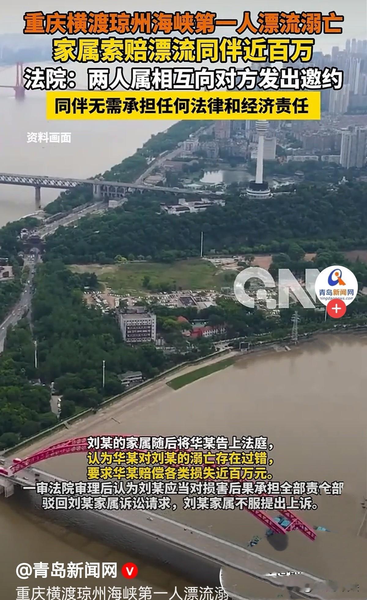 “无耻不需要代价?”重庆,女子曾被称为:重庆横渡琼州海峡的第一人!在长江和嘉陵江水流大涨后,她与同伴仍相约去漂流。漂流途中,因水流太急,两人分散,同伴上岸后给她发信息不回,打电话不接,同伴赶紧报警。然而,一个多月后,女子尸体被发现。女子家属无法接受,认为同伴提议、邀约、组织了这次漂流,在漂流线路上存在重大过失,向她索赔近百万元。法院判决亮了! 刘某在重庆的户外圈里,远近闻名!这位常年与长江为伴的女子,早在2005年就凭着一股韧劲成功横渡琼州海峡,成了媒体口中“重庆横渡琼州海峡第一人”。 这份荣耀像一枚勋章,让她对自己的水性和户外经验深信不疑,也让她更痴迷于在江水中追逐风浪的感觉。 后来,刘某建了个叫“追波逐流漂流”的微信群,自己当群主,拉了一群志同道合的朋友。 她常在群里发公告,特意写明:约伴漂流发生意外,同游者只负责组织救援,不承担法律和经济责任! 在她看来,户外探险本就该自己对自己负责,这份免责声明既是提醒大家,也是她多年来的行事准则。 群里的人都知道她经验足、胆子大,不少人跟着她一起在长江里漂流,每次都能平安归来,这更让刘某觉得,只要自己小心,长江再险也能驾驭。 2024年7月,重庆连日降雨,长江和嘉陵江的水位一个劲地涨,江面变得宽阔又汹涌。 长航公安早就发了警示,说汛期江水流速快、暗礁多,十分危险,但刘某却没放在心上。 有群友在群里发了涨水的新闻链接,提醒大家别轻易下水,她却轻描淡写地回复:只要不被拉起来都是直接无视。 在她眼里,这样的水流正是挑战自我的好机会,多年的漂流经验让她对风险的感知渐渐麻木了。 7月11日,群里的华某发来微信,问刘某第二天要不要一起漂流。 华某也是漂流爱好者,常跟着刘某一起活动。 刘某第二天主动联系华某,两人通了个电话,很快敲定了漂流的事。 刘某提议走熟悉的路线,华某跟着附和,两人都没多想,只觉得这不过是一次寻常的结伴出游。 7月12日,两人换好衣服下水,一开始还能并肩前行,可没过多久,湍急的江流就像一只无形的大手,将两人拉开距离。 华某奋力划水,加快速度往岸边游,上岸后,她掏出手机给刘某发消息:起水后尽快回复个信息。 消息石沉大海,华某又拨通了刘某的电话,听筒里却传来“您所拨打的电话已关机”的提示音。 太阳西斜,江面只剩下翻滚的浪涛,华某越想越慌,他不敢耽搁,立刻拨通了报警电话。 接下来的日子,警方和刘某的家属沿着长江两岸反复搜寻,始终没有刘某的消息。 直到一个多月后,刘某的尸体才被发现。次日刘某被火化,一场原本欢乐的漂流,最终以悲剧收场。 悲痛之下,刘某的家属将华某告上了法庭,索赔近百万元。 他们认为,华某是这次漂流的邀约者和组织者,在确定路线时存在重大过失,而且没有尽到救助义务,才导致刘某溺亡。 法庭上,刘某的免责公告、群里的聊天记录、警方的出警记录都被作为证据呈上。 《民法典》第1167条第1款规定,自愿参加具有一定风险的文体活动,因其他参加者的行为受到损害的,受害人不得请求其他参加者承担侵权责任。 但其他参加者对损害的发生有故意或者重大过失的除外。 法院审理认为,长江漂流本就是高危活动,刘某作为资深爱好者和群主,明知风险还主动参与,事发前还无视涨水警示,明显属于“自甘风险”。 而华某不是组织者,只是共同参与者,分开后也及时报警、联系刘某,已尽到了合理的注意义务。 一审法院判决:刘某自行承担全部责任,驳回其家属的诉讼请求。 刘某的家属不服,提起了上诉。 二审法官同样仔细审查了证据,认为从邀约过程来看,刘某和华某是相互邀约,并非华某单方面组织;而且没证据证明刘某的溺亡是华某造成的,更多是因汛期长江的固有风险。 二审法院最终驳回了上诉,维持原判。 有人说,都是成年人都要为自己的行为负责!就是不是互相邀约也不应该索赔,不能判赔偿。不能助长这样的不良之风,不然社会一点人情味儿都没了! 有人说,有枣没枣打一竿子!你怎么不向长江索赔?怎么可以无耻到如此地步! 还有人说,现在的某些人,遇事沾边就讹上,不是法律意识增强了,德行低到尘埃里了! 死者家属悲痛欲绝可以理解,但不能把这种悲伤当成讹人的工具、伤害旁人的资本! 对此您怎么看?