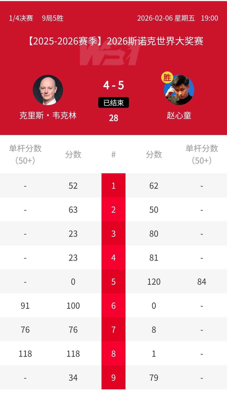 大心脏!不愧是拿过世锦赛冠军,连续两轮绝杀晋级! 昨天1-4落后塞尔比,连胜四局,最终5-4翻盘。 今天4-1领先韦克林,连输三局,最终拿下决胜局,5-4拒绝逆转。