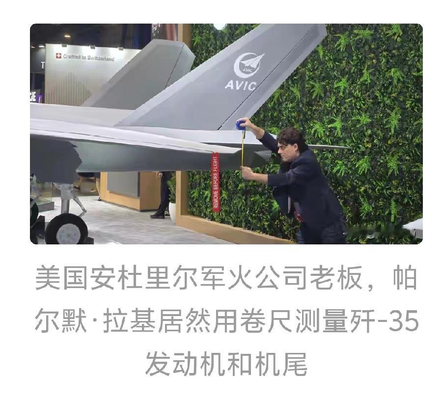2026年2月6日新加坡航展中国航空展区,上演了“世界名画”——被中国制裁的美国安杜里尔军火公司老板帕尔默·拉基,竟用卷尺量中国歼 - 35战机模型,还质疑其能否达真正水平。 从技术角度看,他量的是缩比演示模型,这对了解歼 - 35真机性能毫无意义,发动机推力等核心性能根本没法靠量外壳推断。而且该公司主营无人机,不研发有人战斗机,量模型也借鉴不到隐身技术。 他这更像是流量表演。若歼 - 35真装了涡扇19,那对美国F - 35来说可能就是噩梦,美国军火商估计是战略焦虑才搞出这一出。