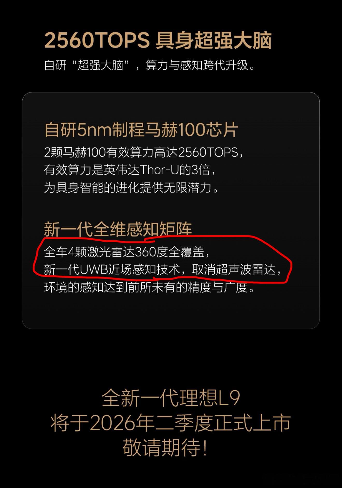 ➡️ 感知系统更新新 L9:四激光雷达,UWB 替代超声波雷达