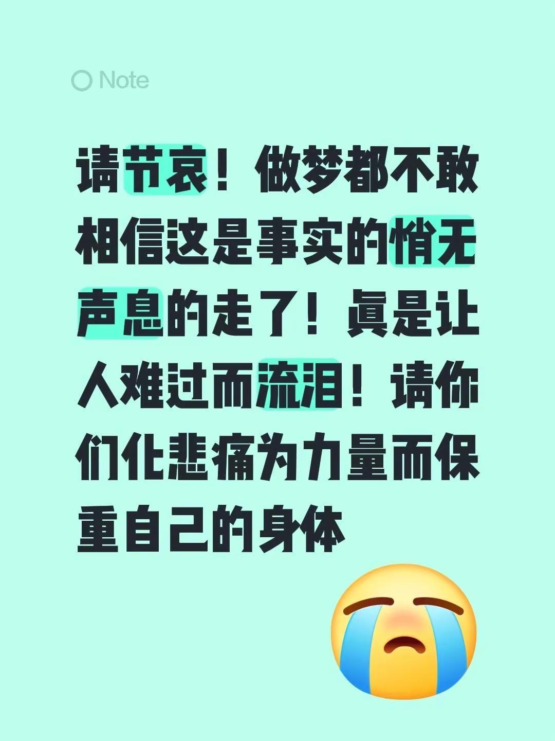 我评论了@天意的作品:请节哀!做梦都不敢相信这是事实的悄无声息的走了!真是让人