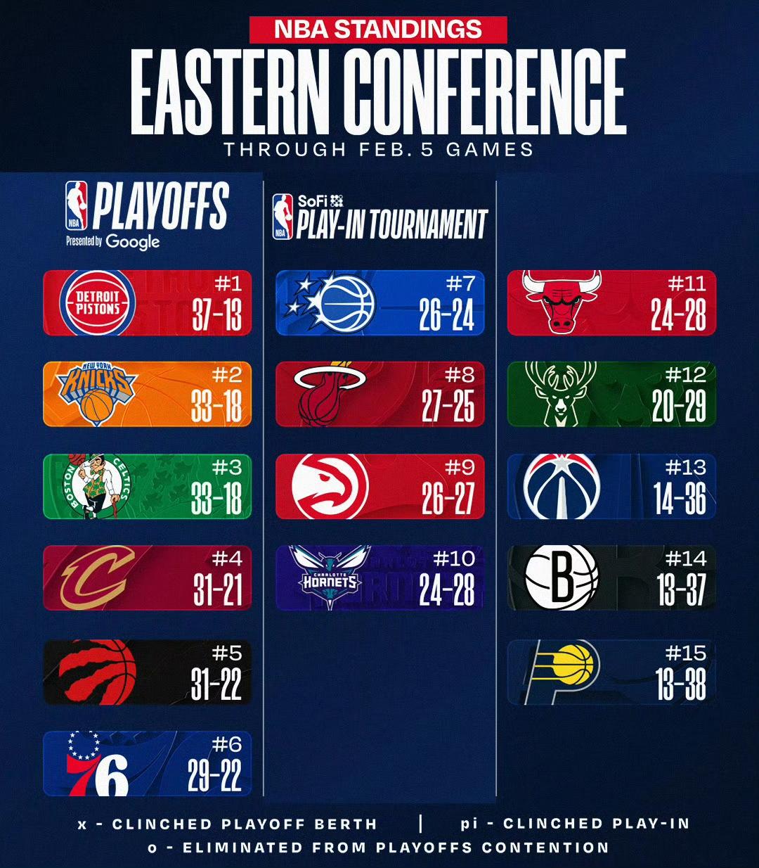 东部比起西部更令人意外!曾经的鱼腩,一跃而起;昔日的冠军,彻底摆烂。哈登加盟骑士,必将改变格局。 不知不觉黄蜂已经八连胜了,一跃进入附加赛区。 雄鹿本赛季居然附加赛区都摸不到,字母哥想走却走不了。 上个赛季的东部冠军步行者居然垫底了,只能摆烂,来年抽个好签。 沉寂了很久的活塞本赛季终于登顶东部,也不枉这些年的摆烂。