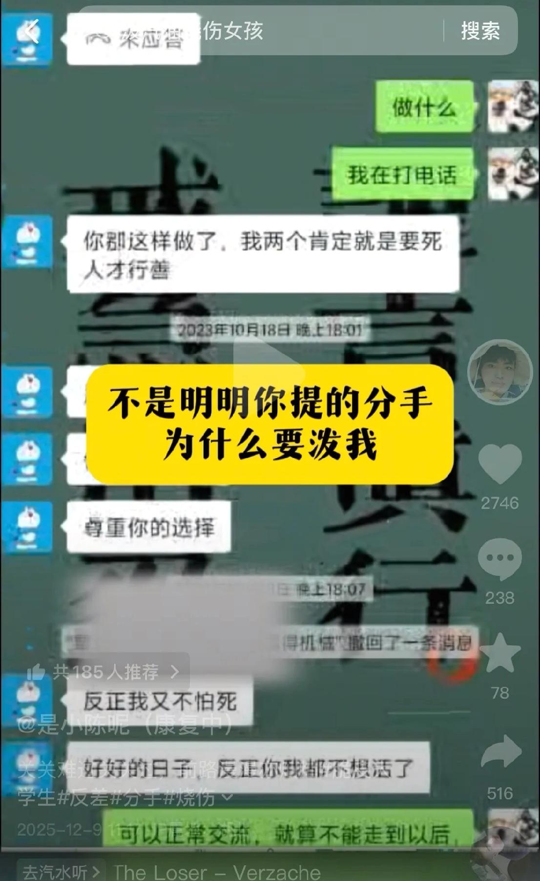 小陈是大学生,覃某是初中生,一个坐办公室有好工作,一个开挖掘机干苦力活,两个不同“身份”的人,却因为3次分手被泼汽油伤害,一个烧伤面积达百分之69,一个被判有期徒刑12年。 “反正我不怕死,我连死都不怕,你觉得我会怕警察吗”,覃某从派出所调解出来后就对小陈进行了威胁,这次是因为覃某跑到小陈公司进行吵闹,他不想跟小陈分手。 他想不通,曾经“同病相怜”的两个人,为什么小陈会跟他分手。 自己弟弟有精神疾病,小陈妹妹有智力障碍,两个人的身世这么相近,不应该在一起吗,小陈为什么要分手。 他把原因都归到小陈身上,从不想想自己的问题。自卑、敏感、易怒,甚至还打过小陈,这样的人怎么能好好处下去。 当覃某听到小陈要到外地躲几天,他自己受不了,从摩托车里面抽了两桶油,于是悲剧就发生了…… 重度烧伤,被迫截肢,更令人胆寒的是覃某在法庭上对小陈笑了,特别的瘆人。 从一个不富裕的家庭,好不容易上了大学有了好工作,遇人不淑,到毁容毁了人生,一步错步步错,用一次次的原谅换来无妄之灾,真的是太可惜了!