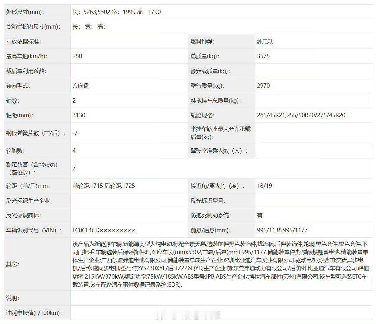 比亚迪大唐,这车可不小,长宽高:5,263/5,302 x 1,999 x 1,790 mm,轴距:3,130 mm。