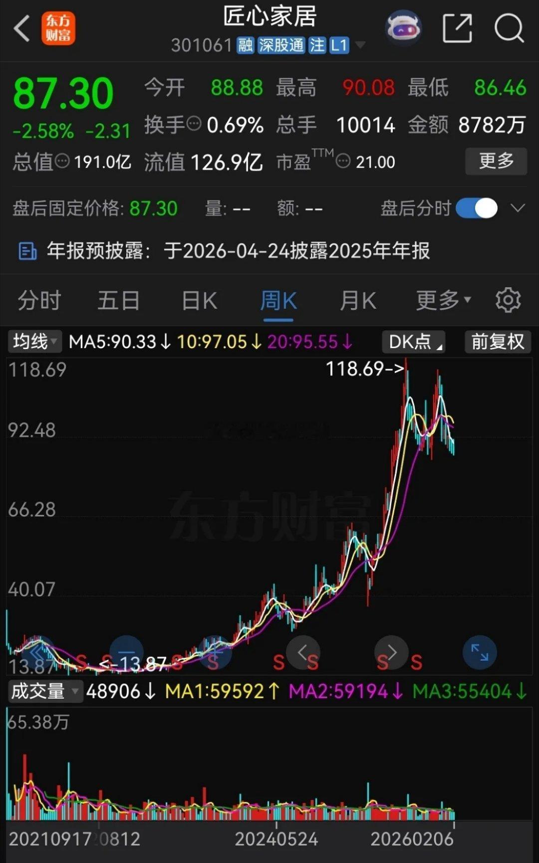 而家具家居、建材板块的股票才是真正的疯牛,像匠心家居从13.87元涨到了最高118.69元,涨了近9倍;亚振家居从3.13元涨到了最高51.80元,涨了16倍多;菲林格尔从2.88元涨到了最高49.70元,涨了 17倍多;友邦吊顶从8.16元涨了最高82.57元,涨了10倍多;宏和科技从4.51元涨到了最高59.07元,涨了13倍多。