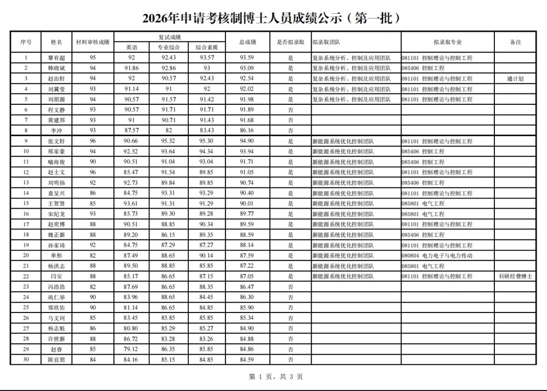 山东大学2026博士拟录取名单(第一批)