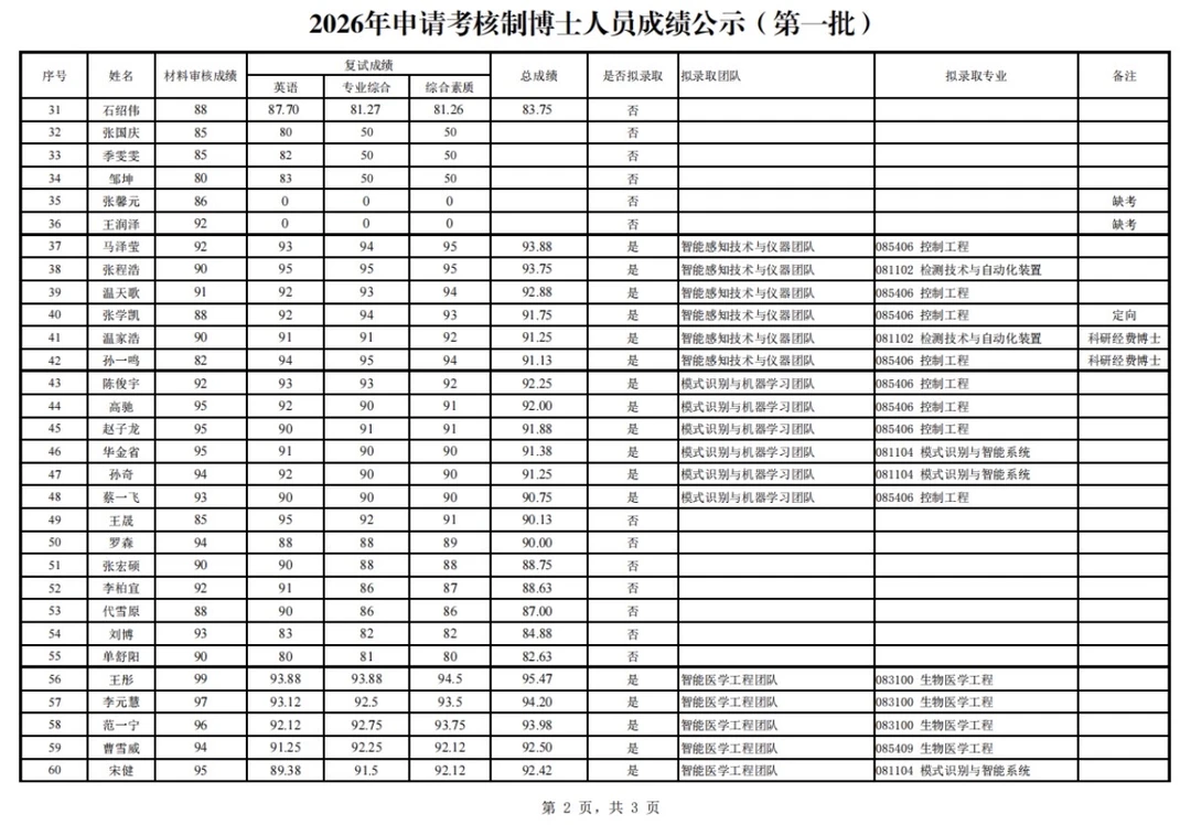 东南大学2026年全日制博士研究生拟录取名单