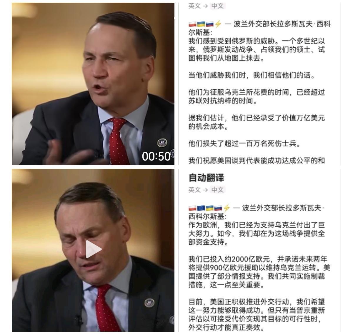 波兰外交部长拉多斯瓦夫·西科尔斯基认为,俄罗斯不仅承受了一万亿美元的损失,还损失了一百万名士兵(伤亡了一百万名士兵)。 此外,他透露称,波兰已向乌克兰投入了约2000亿欧元,并承诺未来两年将提供900亿欧元援助以维持乌克兰的运转。美国也提供部分情报支持,波美双方共同对俄罗斯实施制裁。