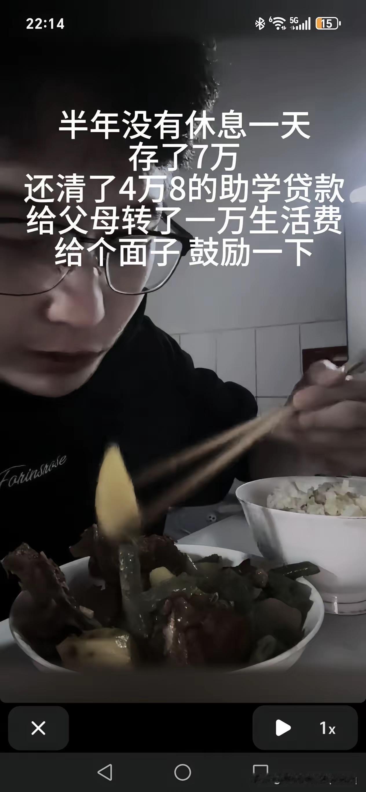 半年没休一天,攒下7万还清助学贷款,还给父母转1万生活费,这才是年轻人最该有的模样! 没有躺平抱怨,没有啃老依赖,用实打实的辛苦扛起责任,还清债务是守信用,孝敬父母是懂感恩,这份踏实与担当,比赚多少钱都珍贵。 现在很多人总盯着光鲜生活,却忘了脚踏实地最难得。这位小伙用行动证明,普通家庭的孩子,靠自己也能一步步站稳脚跟,每一分钱都挣得干净、花得坦荡。 真正的优秀从不是一夜暴富,而是扛住压力、守住初心、不负自己也不负家人。这样努力又懂事的年轻人,未来一定越走越顺,好日子才刚刚开始。 你身边有没有这么拼的年轻人?一起来为他加油打气吧!