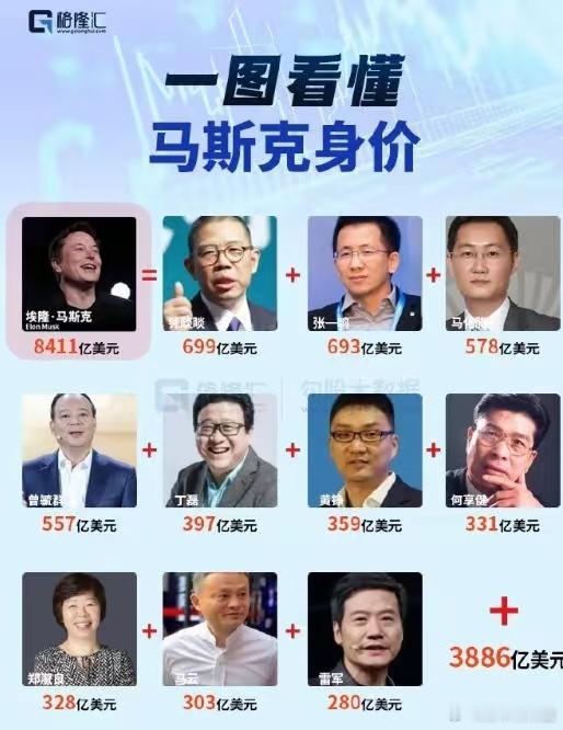 马斯克身价比中国前十大富豪还多3886亿美元!