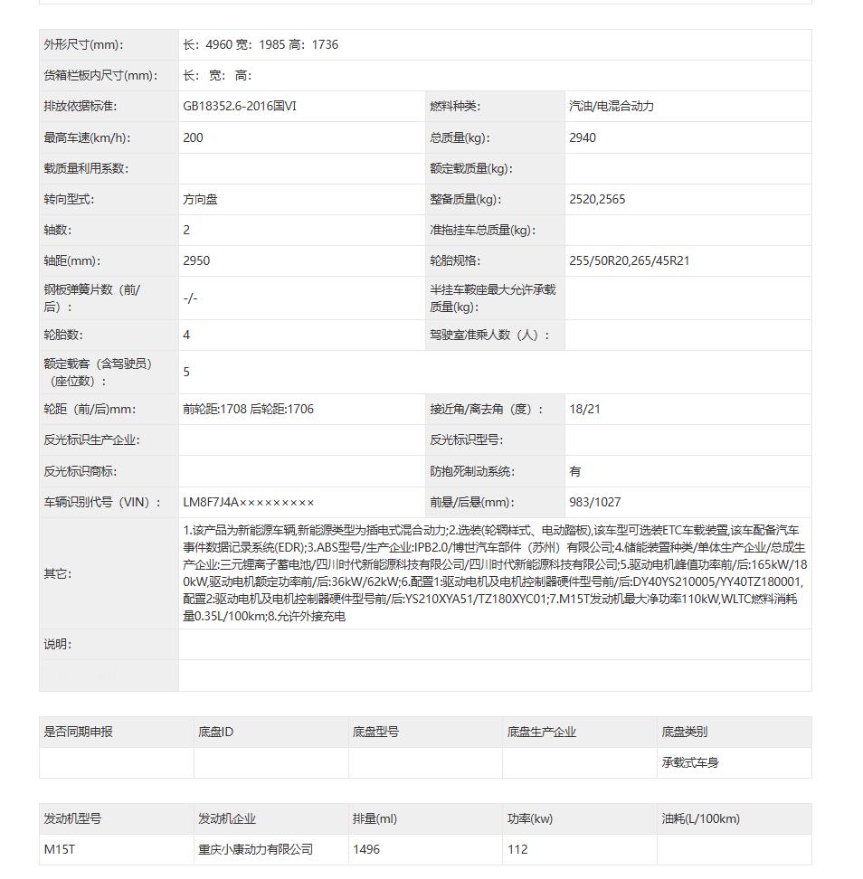 均为四驱,165kw/180kw,增程器为M15T