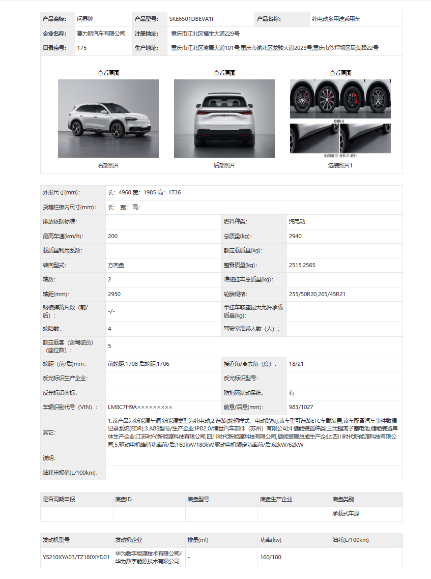 分为后驱和四驱两个版本,四驱160kw/180kw,后驱227kw
