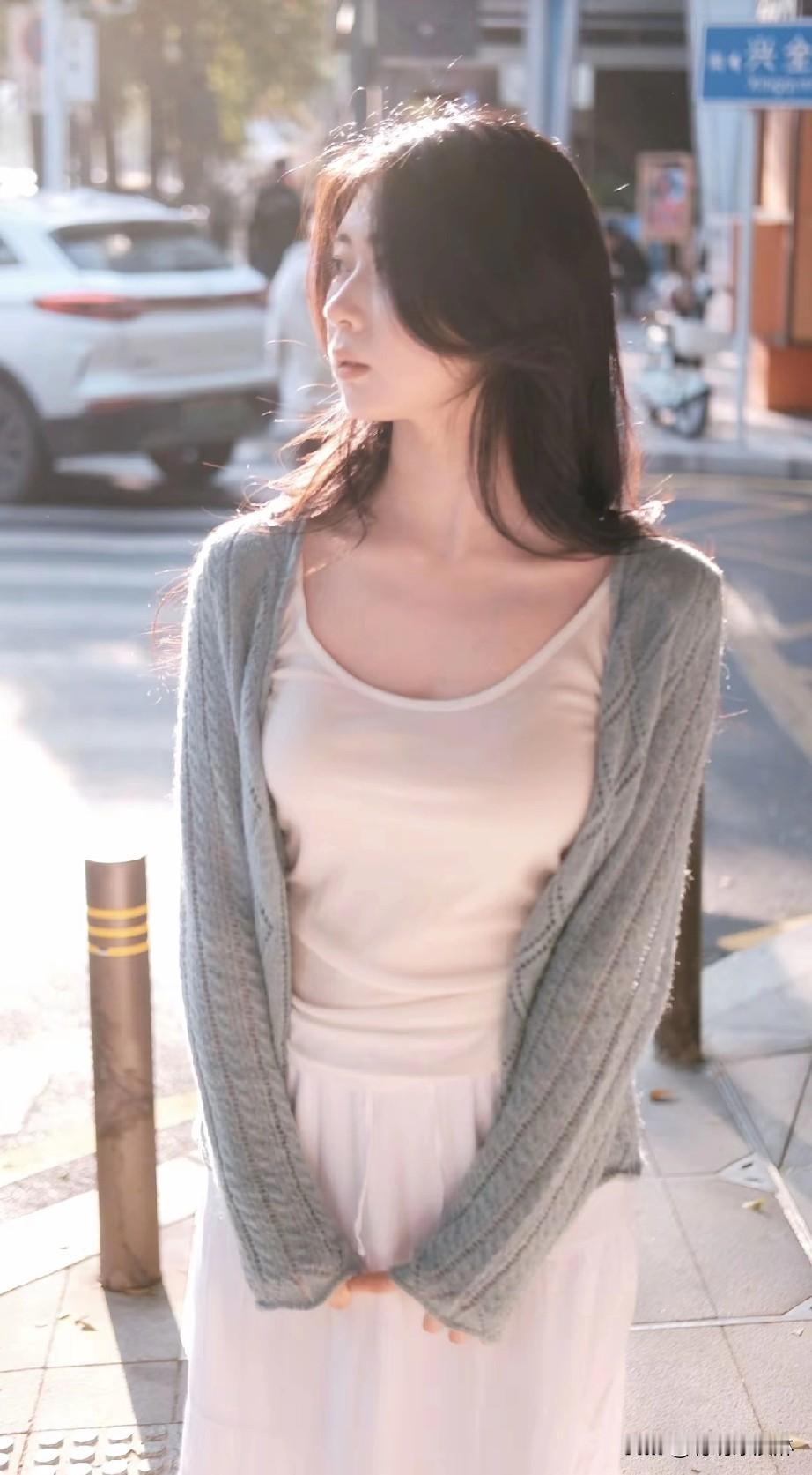 清新穿搭,白色背心+卡其色短裤,搭配自然风景,元气满满!