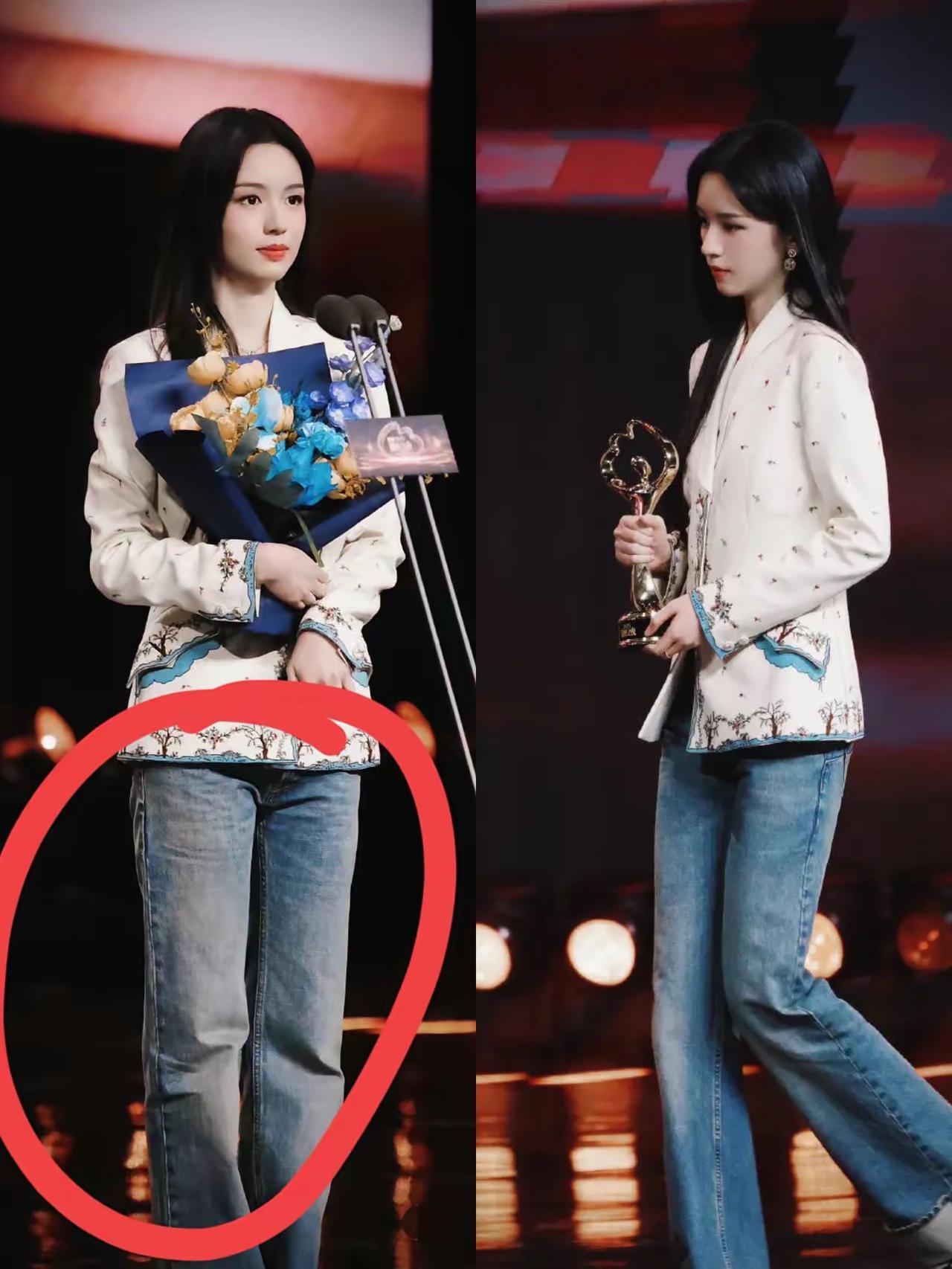 我敢说, 周也是昨天微博之夜最猛的女明星了! 不是因为她敢说敢做,而是她居然敢穿着牛仔裤上台领奖,这操作真的全网独一份! 红毯上她穿蓝色羽毛高定礼裙,仙气飘飘契合盛典氛围,转头领奖就换国风外套配牛仔裤,张弛有度的穿搭选择,比一味的华服堆砌更有记忆点。 其实哪有什么场合必须穿什么的定规,不过是大家默认的审美枷锁,周也的这份松弛,恰恰证明真正的体面从不是靠衣服撑起来的,而是由内而外的自信。 她用行动告诉所有人,穿衣自由从不是口号,而是敢于在规训里做自己。比起千篇一律的精致,这种有主见的穿搭选择才更显珍贵。 你们觉得周也穿牛仔裤领奖,是真·敢做自己,还是有点不合时宜呢?