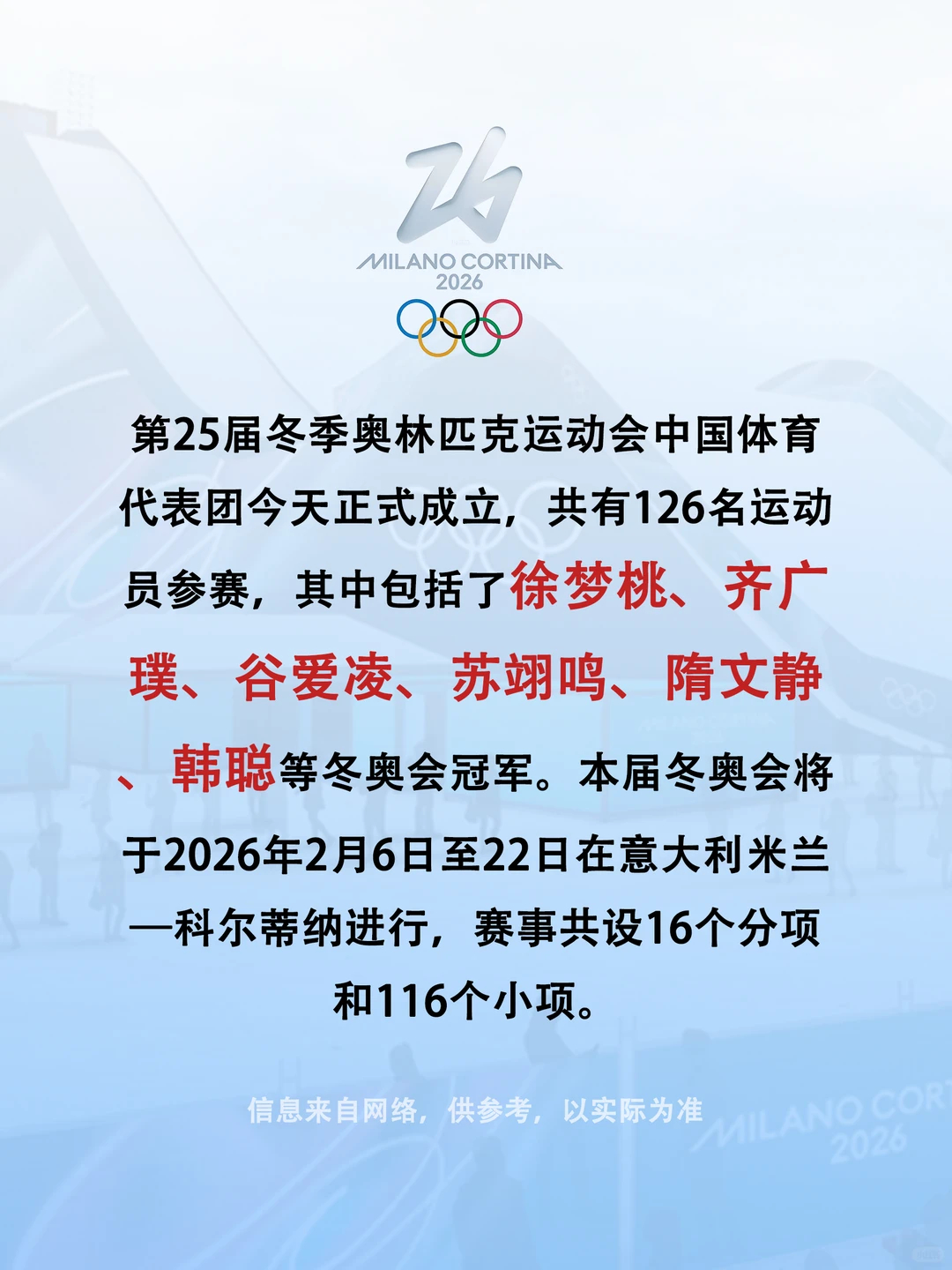 米兰冬奥会中国队创多个首次硬核盘点|中国军团本届冬奥创下多项历史突破,每一项都值得骄傲✨1️⃣ 境外参赛史上规模最大、项目最多:126名运动员出战7大项15分项91小项,参赛版图全面扩容2️⃣ 新增项目历史性首秀:滑雪登山项目满额参赛,中国年轻队伍亮相奥运,填补项目空白3️⃣ 冠军阵容创境外新高:10位冬奥冠军联袂出征,多点冲金、集团作战,告别单点突破4️⃣ 潜优势项目全面进阶:钢架雪车、跳台滑雪等实现参赛与竞争力双重突破,冰雪布局更均衡从追赶到领跑,从单点到全面,中国冰雪稳步向前,期待健儿们再创佳绩🇨🇳