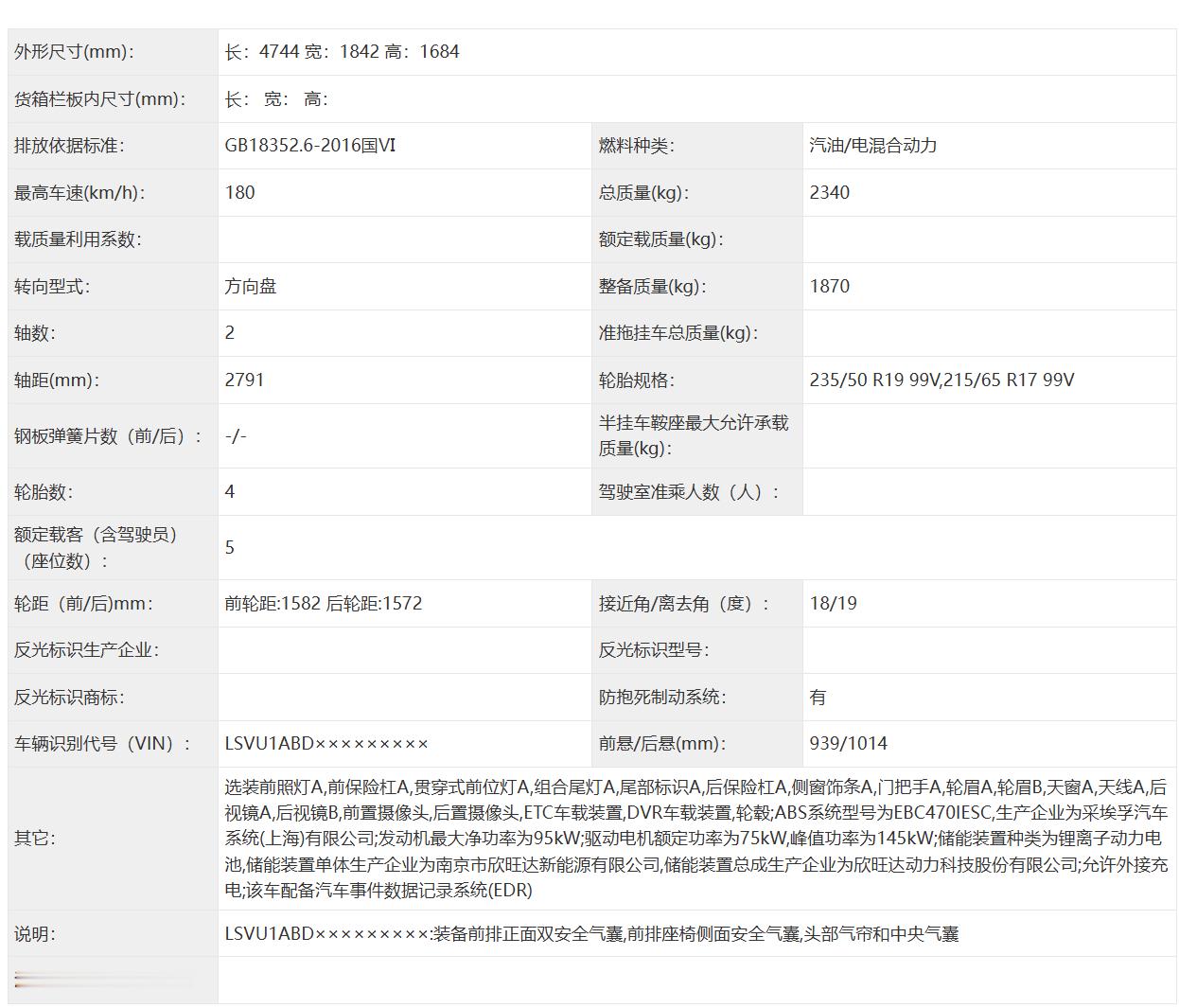 全新途观L PRO越长越科幻了呀4744*1842*1684mm,轴距2791mm,整体参数和现款差不多轮毂尺寸由R17/R19两款接近角/离去角有18/19°,可以进行轻度越野配备了发动机+电池的组合,使用锂电池储能,欣达旺的电池感觉上汽大众还是大刀阔斧做了一台不一样的车子出来啊途观L途观LPRO