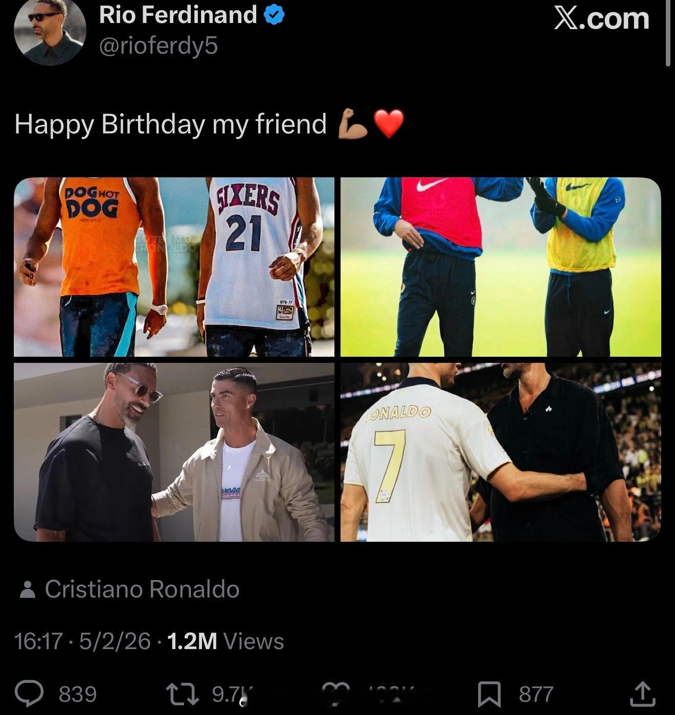 费迪南德昨天祝C罗生日快乐,前两张在曼联的照片我没见过