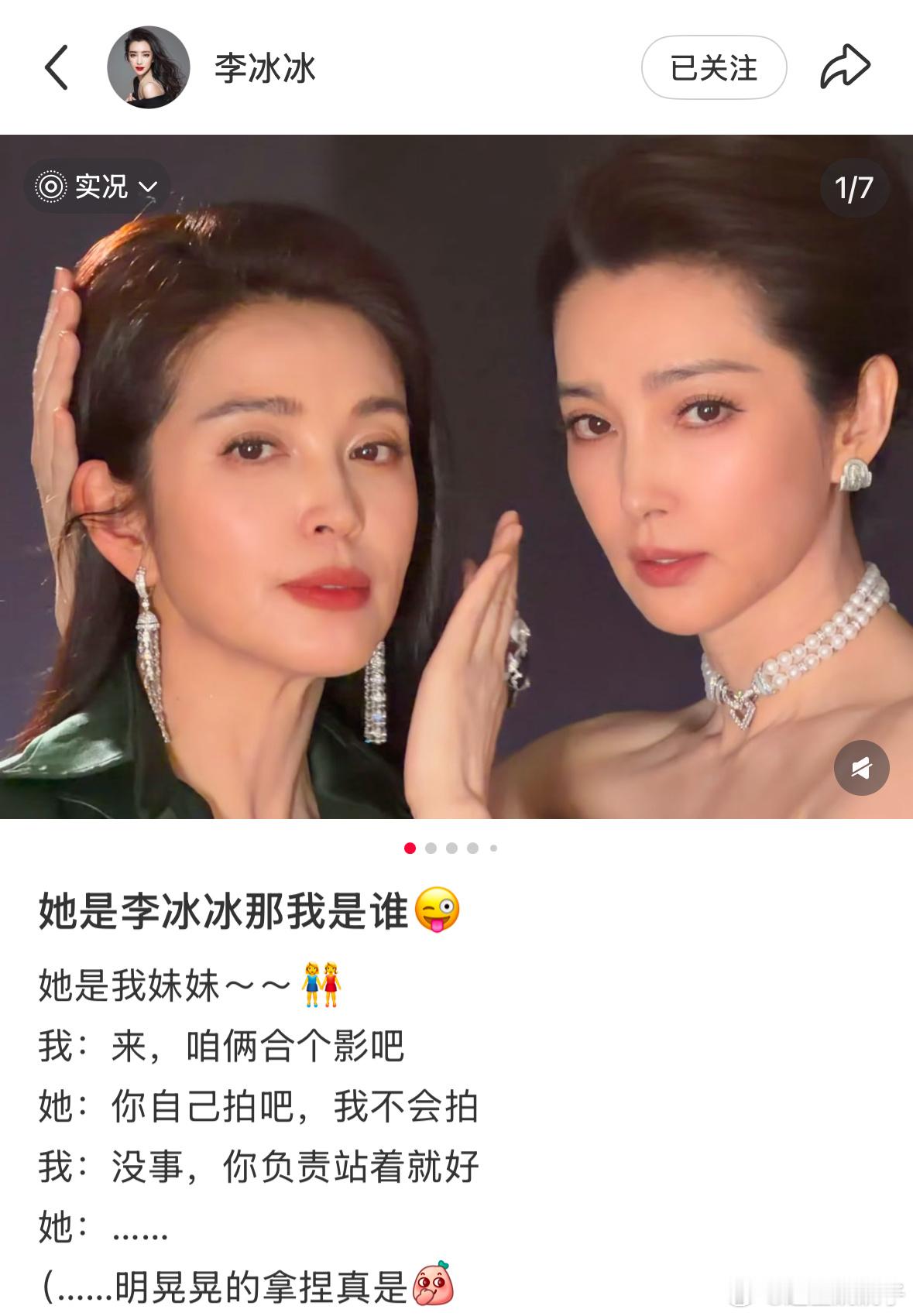李冰冰晒和妹妹李雪合照李冰冰和李雪的颜值遗传真的太优秀了,俩人不管是五官还是整体的气质,都有着超高的相似度,同框出镜就是妥妥的颜值盛宴