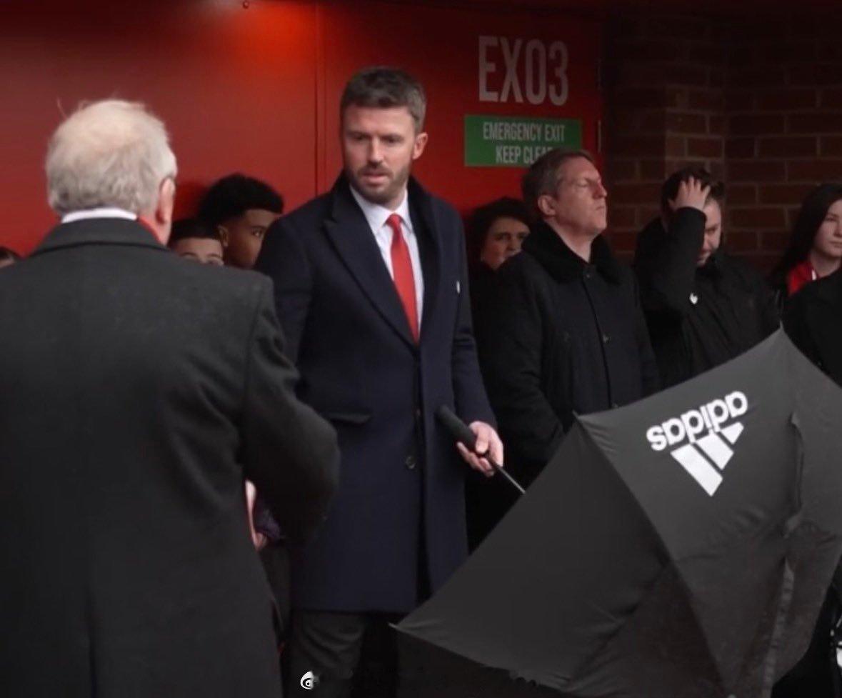 曼联主帅卡里克,队长费尔南德斯,在纪念仪式现场。费尔南德斯和女队队长敬献花环