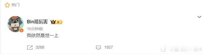 前有Knight沙皇不对劲,后有On送输,关键时刻Bin站出来承担压力,说自己依旧是世一上。之前BLG不给Bin多发东西,因为节奏太大了,不知道这条是不是通过BLG审核发出来的后续:好像是Bin自己要发的,谁也没说哈哈哈