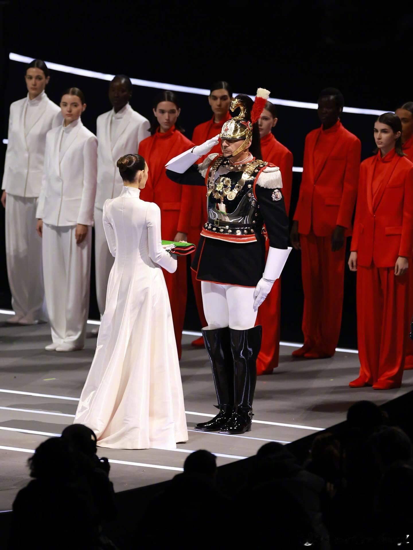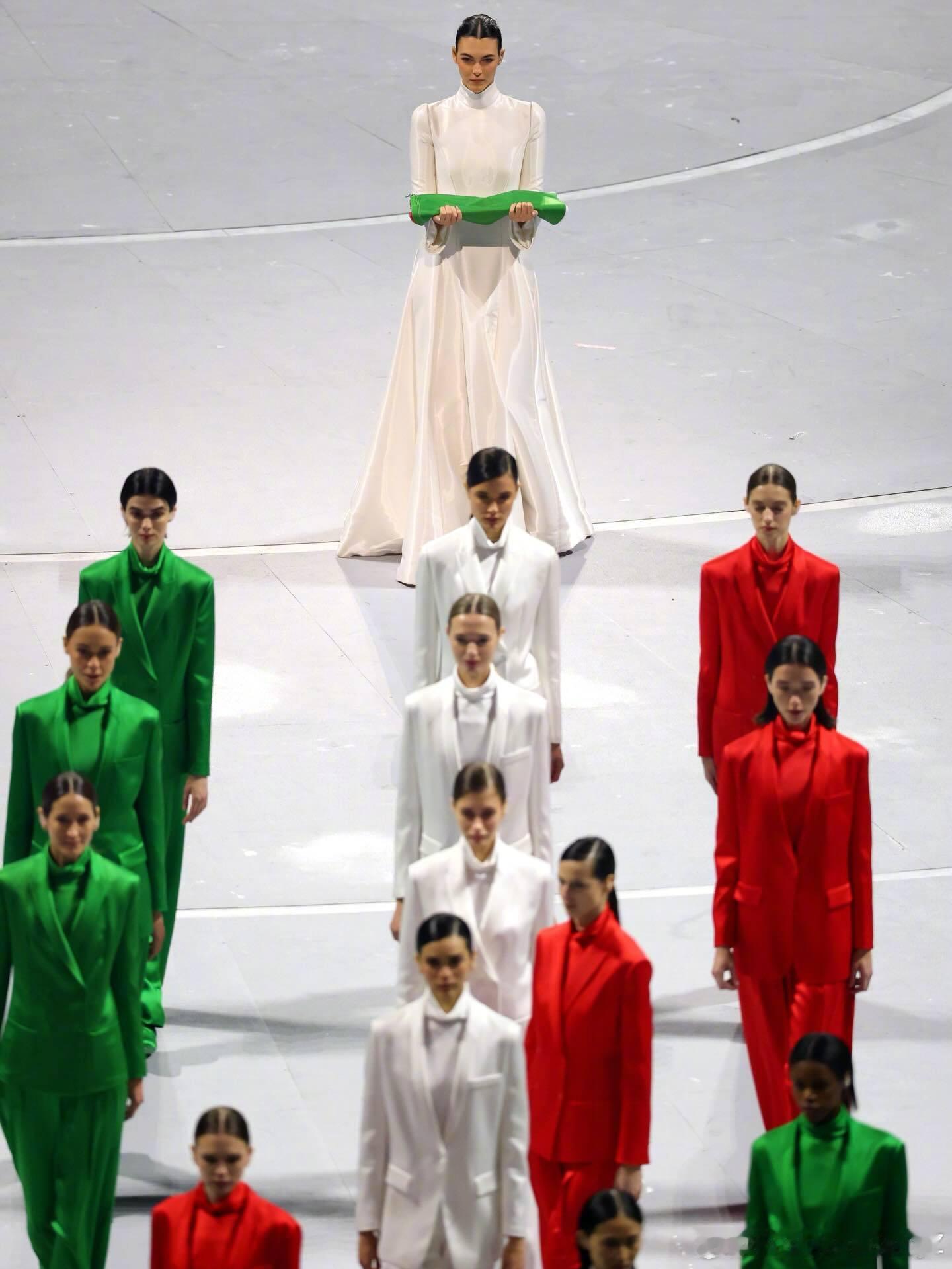 在 Vitto 之前还有身穿三色 Giorgio Armani 西服套装的模特们列队登场,以示对去年离世的大师 Armani 先生致敬、同时也在冬奥舞台向世界展示意式优雅的力量🇮🇹