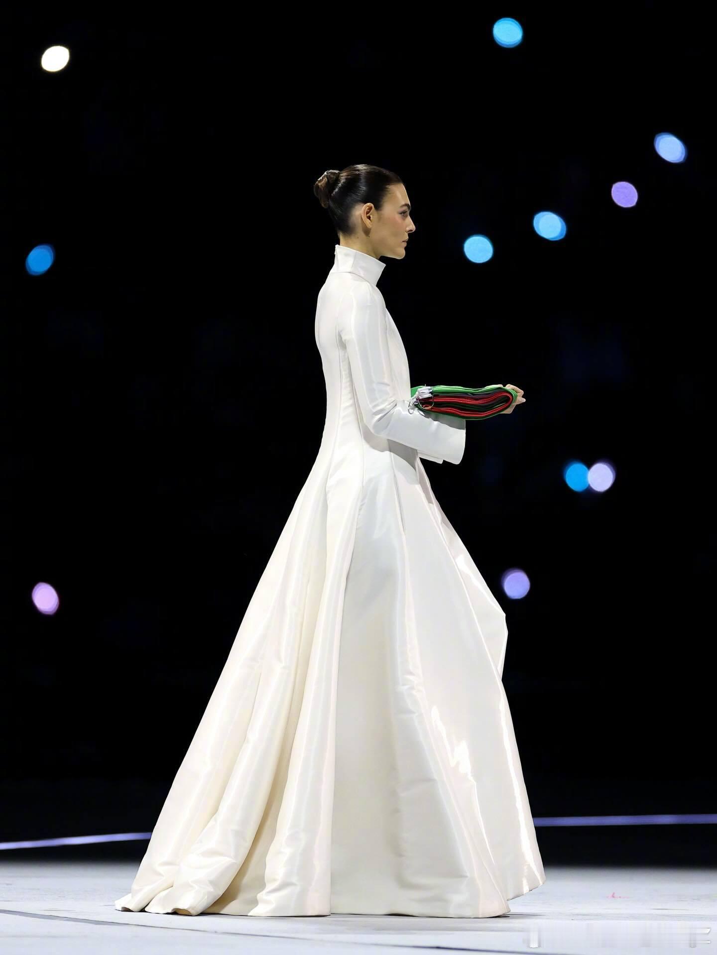米兰冬奥会,超模 Vittoria Ceretti 身着一袭 Giorgio Armani 特别定制礼服,手捧国旗入场! 冬奥会时尚图鉴 🧊 冬奥观赛团