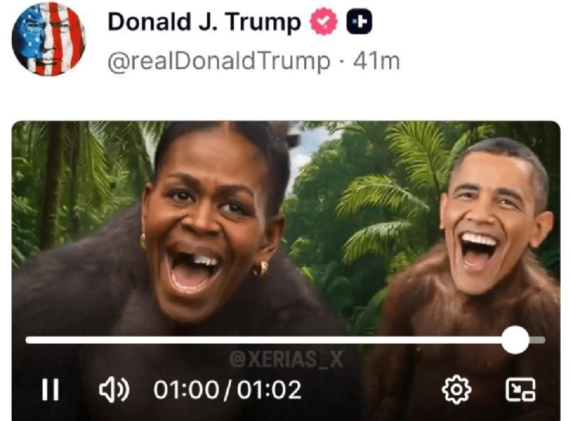 特朗普政府再度陷入种族争议漩涡。美国总统特朗普于周四(5日)在其社交平台“Truth Social”转载了一段约一分钟、涉及2020年大选阴谋论的影片。影片中,前总统奥巴马与夫人米歇尔被恶意移花接木成“丛林灵长类动物”的画面,随即引发朝野两党强烈谴责。白宫最终于周五(6日)中午撤回相关贴文。