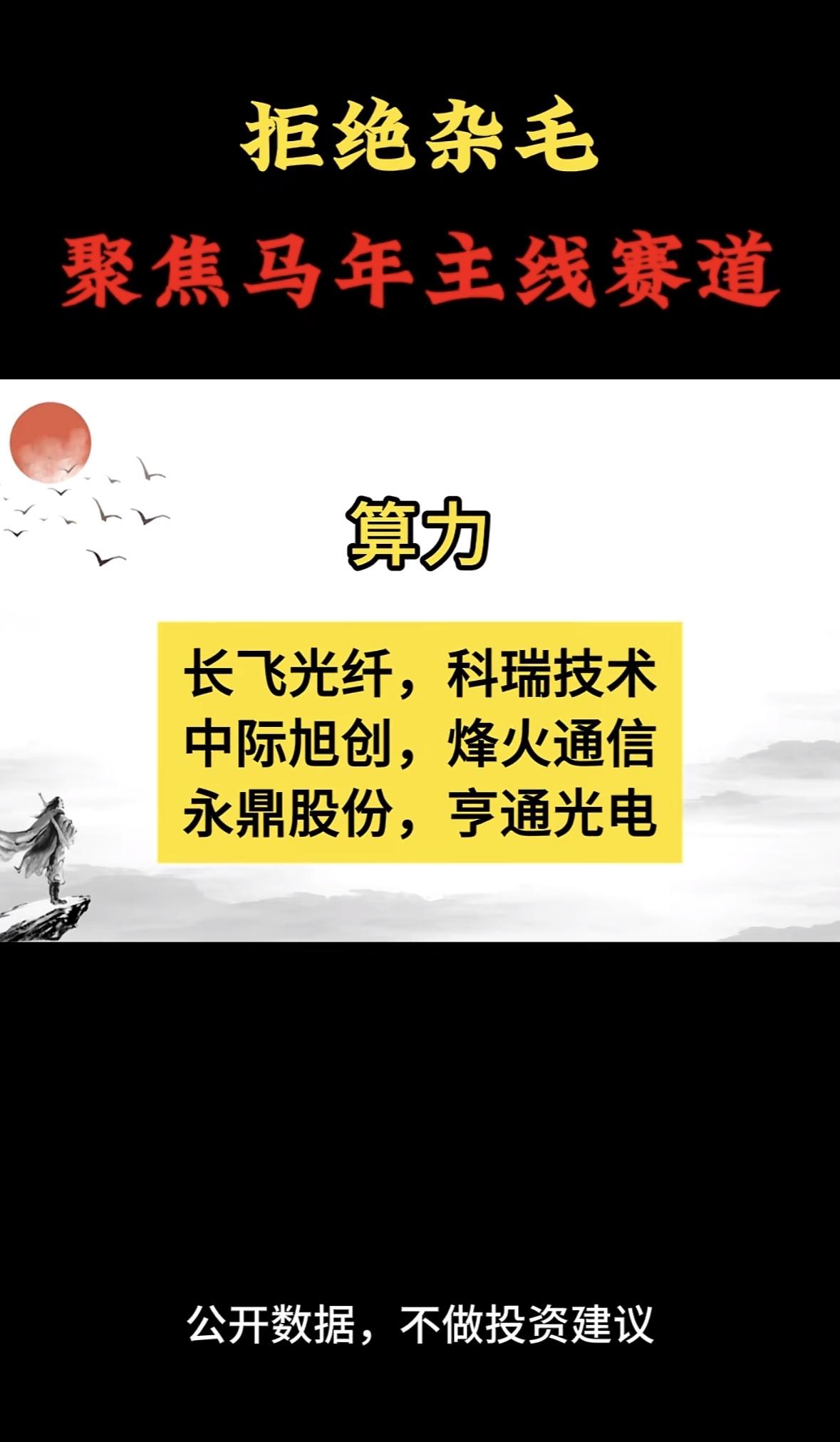 2026年聚焦马年主线赛道,拒绝杂毛,算力为王! 聚焦马年投资主线,太空光伏成热点。关注龙头个股,公开数据供参考,理性决策勿盲从。
