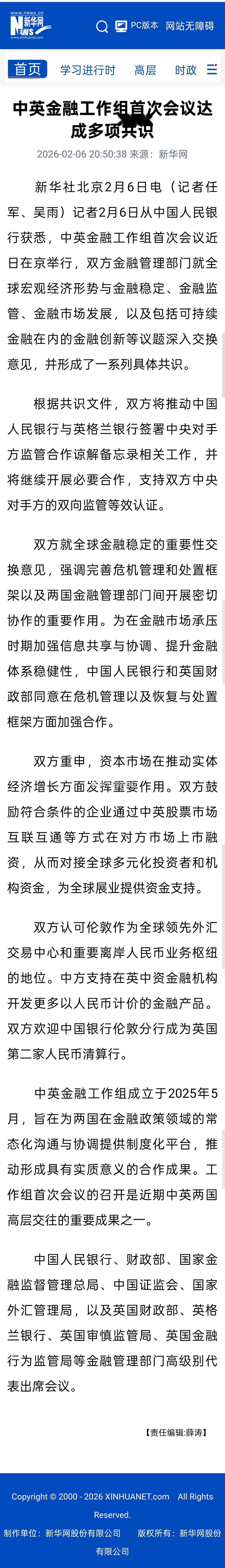 双方认可伦敦作为全球领先外汇交易中心和重要离岸人民币业务枢纽的地位。中方支持在英中资金融机构开发更多以人民币计价的金融产品。双方欢迎中国银行伦敦分行成为英国第二家人民币清算行。大国都在转向,小国还在横跳。