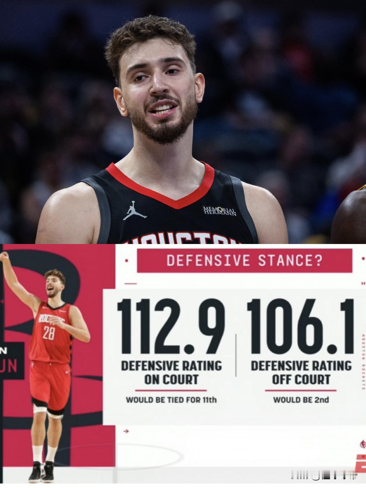 火箭的问题终于找到了,最大的问题就是申京! 据NBA数据机构统计,申京在场的时候火箭百回合失分为112.9,排名联盟第11位。但是等申京下场后,火箭得百回合失分降到了下106.1,排名联盟第2。 由此看来火箭最大的问题就是申京不防守了,昨天与黄蜂的比赛中,克尼佩尔轻松就过掉了申京让杜兰特都无语了,忍不住向申京大喊“你能不能防一下啊”。 申京的天赋真的很尴尬,防后卫的时候脚步很慢,防中锋的时候身材又偏小,只有在协防的时候偶尔能盖帽下,亚当斯不在了,他的问题就暴露出来了。火箭如果要围绕申京建队的话,球队迟早要散。