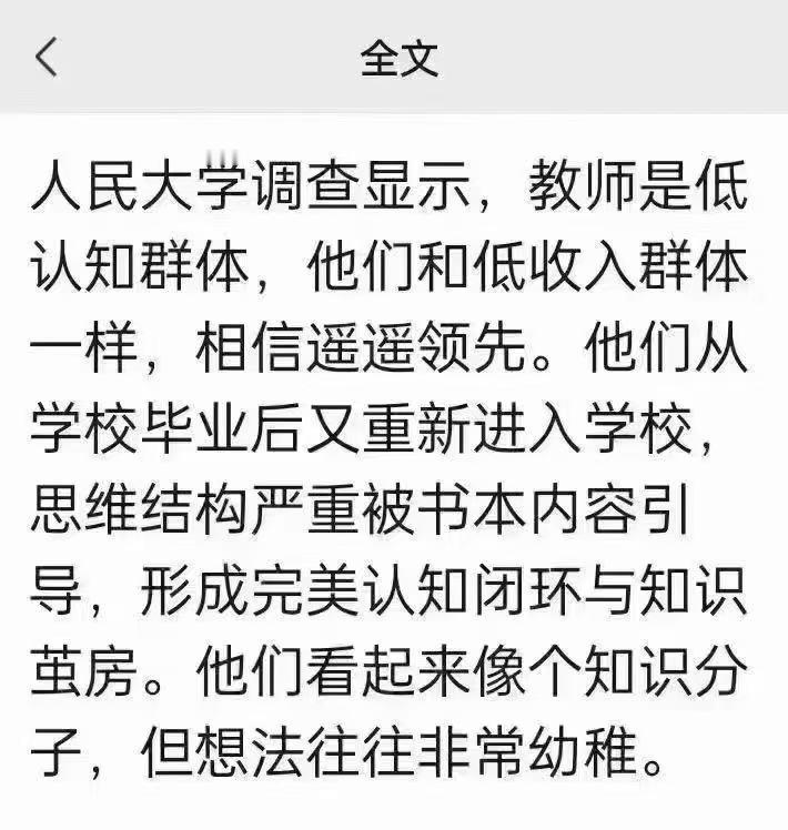 认知差,在哪个群体都有,老师群体可能更严重一些,教授只是教书匠,有的做一些已经知道答案研究,外面的事情接触的少,认知就只是茧房里的知识。