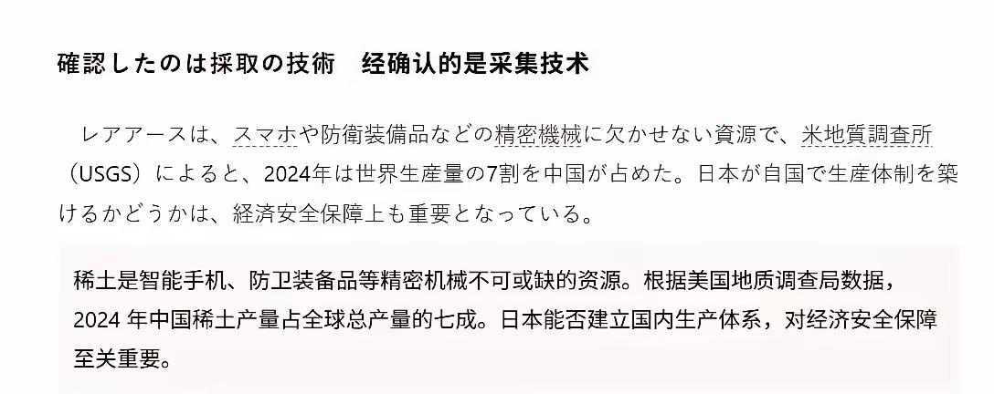 朝日新闻:“高市早苗说:‘日本今后不再担忧稀土问题’。 这是把日本人当猴耍。 日本就是故意放出这些消息,既是幻想中国放开制裁,主要还是忽悠日本选民。 日本人只要用脑子想想就明白,整个国家的产业寄托在一条伸向海底6000米的管道,底下一点点风吹草动,就全行业歇菜了,根本无法保证日本的稀土需求! 澳大利亚,哈萨克斯坦,美国,巴西这些国家都有稀土矿,日本却不平价跟他们购买。 实际上就是一场政治秀,本质是日本自己没有提炼稀土的技术和产业链!