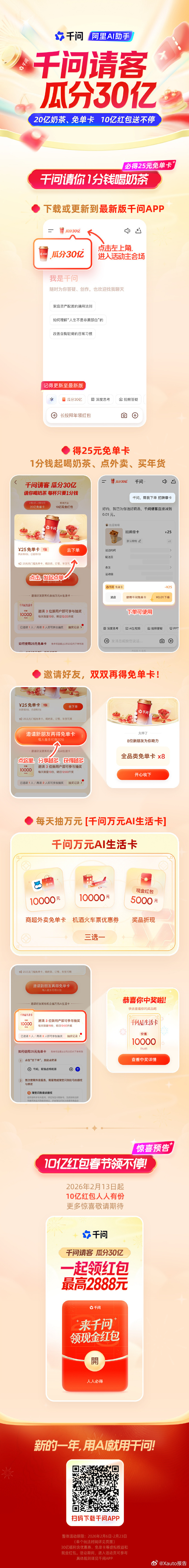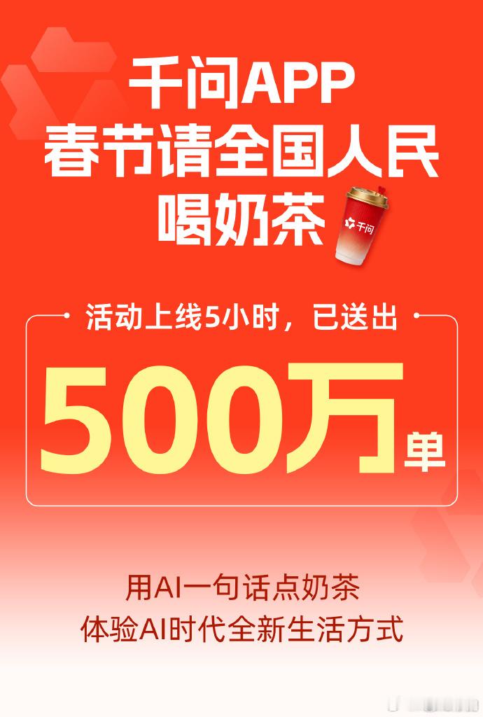 千问免单不止奶茶千问APP免单活动超火爆,上线5小时下单破500万单后又达千万单,带动多家茶饮品牌热销。25元免单卡可领,无套路不凑单,多品类多门店通用,最长2月28日前有效。千问app免单上线9小时破1000万订单