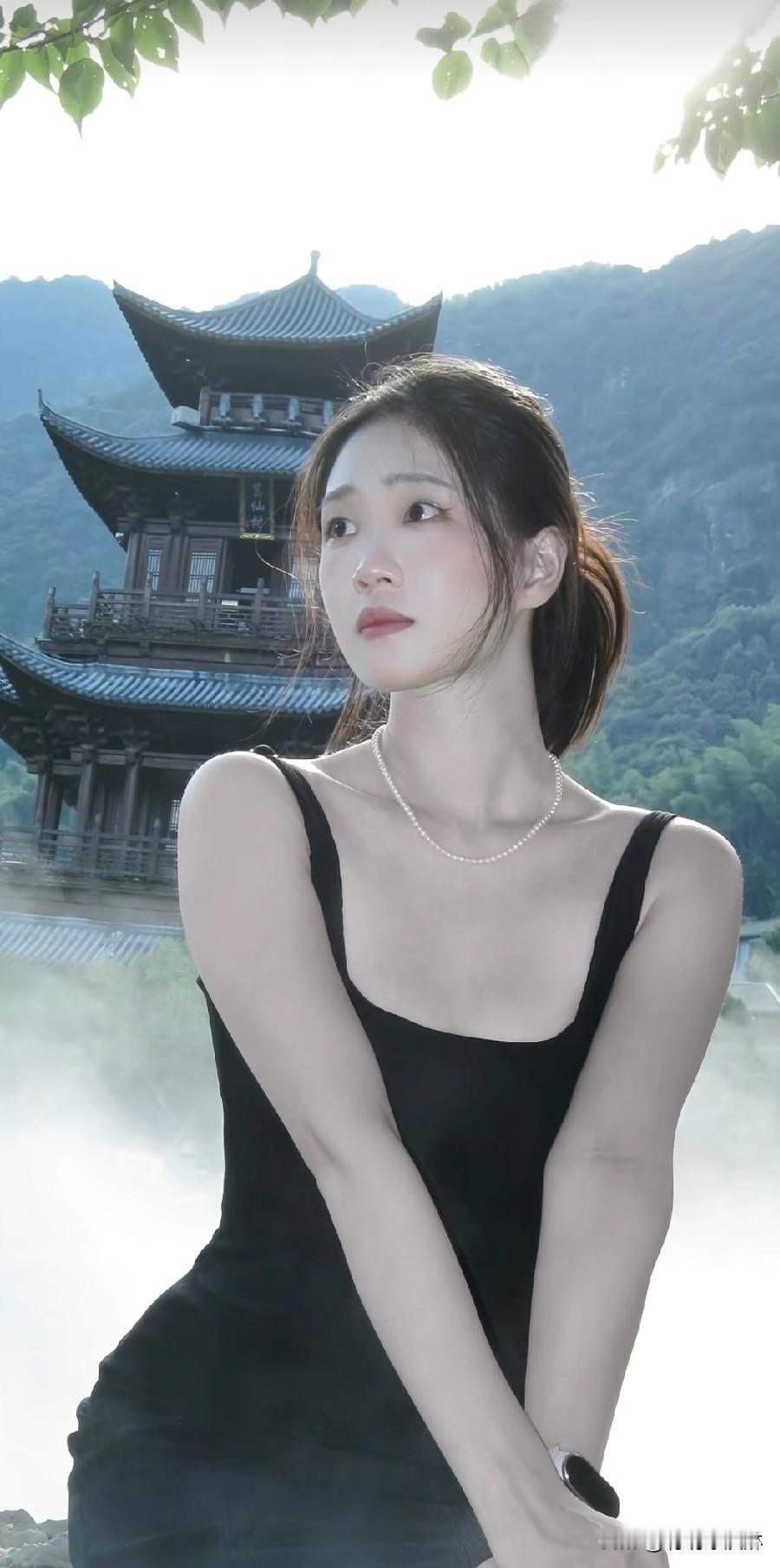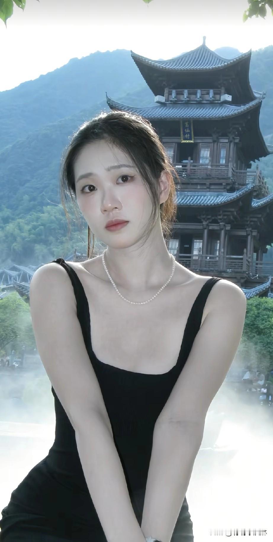 她是风掠过田埂时刻意慢下来的弧度黑衫漫过腰线像暮色漫过矮墙~牛仔裤裹