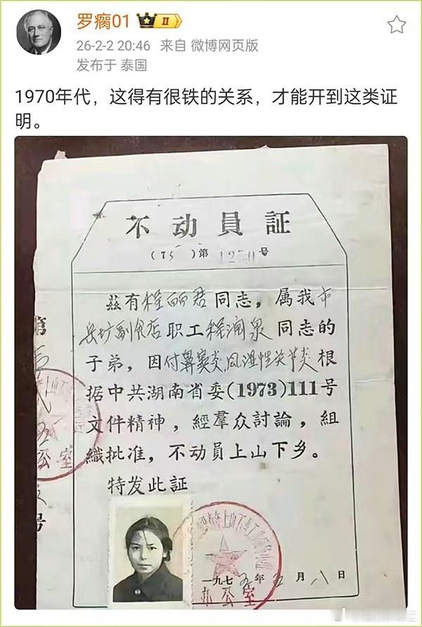 上山下乡的年代,不想上山下乡,就得有"不动员证",这张具有文物价值的凭证让人思绪万千……