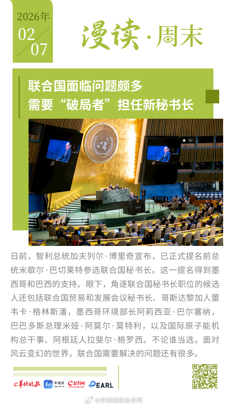#漫读周末# 联合国面临问题颇多,需要“破局者”担任新秘书长;全球买家“打卡”华强北,科技“广货”何以热销海外?医学教授从医逾三十年,拆除患者脑内上万颗“炸弹”;下雨当“渡劫"起雾会“遇妖”,广西村民拍出“西游记”;从现象级网红到可持续产业,“拼豆”经济如何撬动年轻消费?伊朗美国开谈难点在哪里?前景或许并不乐观。#王楚钦尊重国家队的安排##飞饼师傅被认定外籍专家发放慰问费##38岁父亲独自爬野山坠崖遇难# 更多精彩报道,请扫码关注羊晚全媒体报道!