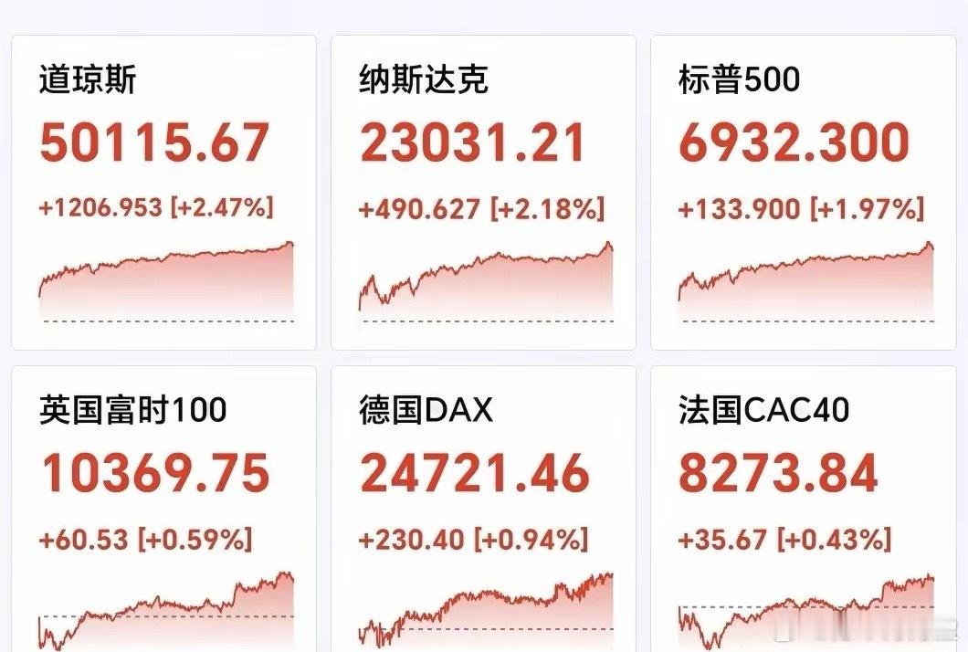 美三大指集体大幅收涨📈,道指史上首次突破5万点大关,科技股大幅反弹中概股普涨,中国金龙+3.71%欧三大指集体收涨📈