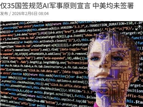 中美两国都不参与!这一次中美倒是难得的有默契!2月6日,根据新加坡联合早报报道,85个国家参加了在西班牙拉科鲁尼亚举行的“军事领域负责任使用AI”峰会,结果仅有35与会国家签署一项关于AI的20项原则承诺。外媒称,两大军事强国,美国和中国都未在联合宣言上签字。 很显然,作为全球在AI产业上发展最快的两个国家,中美都不签字,这让这一峰会的实际意义大打折扣。当然,中美两国为什么不签字呢?这是因为中美两国都有各自的考量。说的更加直白一点,只要中美两国没有就AI发展的大方向达成全面的共识,这样的峰会很难取得实质性的进展。 最近这段时间,人工智能技术正呈现爆发式增长,而军事领域的AI应用,更是牵扯到全球的安全局势,所以这次85个国家凑在一起开峰会,本意是想定些规矩,规范一下AI在军事上的使用,避免大家乱搞引发更大的风险。 可偏偏最有话语权的中美两国都没动笔,剩下那35个国家签了字,说白了也很难起到真正的约束作用,毕竟论军事AI的研发实力、应用规模,中美俩说第二,全世界没人敢说第一,没有这俩核心玩家撑场,再多国家签字也像是凑数,根本形不成真正有影响力的规则。 先说说美国,说白了就是不想被任何国际规则捆住手脚,耽误自己搞军事AI的进度。现在美国一门心思要保住自己在军事AI领域的霸权地位,一边拉着OpenAI这样的科技公司搞军民融合,一边还借鉴SpaceX的“快速失败迭代”模式,拼命加快军事AI的研发速度,就是想比中国快一步,牢牢攥住技术上的优势。 一旦签了这份宣言,里面的条款肯定会限制它的研发节奏,甚至可能要求公开部分研发情况、接受国际监督,这对向来想“我说了算”的美国来说,简直就是亏本买卖,它才不会给自己找不痛快。 更关键的是美国打心底里不愿意和中国这样的国家一起,在联合国这样的多边框架下平等制定规则。它更想拉着自己的盟友,搞一个符合自身价值观的小圈子,把中国排除在外,这样才能牢牢掌控规则的话语权,不让自己的优势被稀释,也能变相遏制中国军事AI的发展。 除此之外,美国国内也没达成统一意见,军工复合体、科技巨头和政府在AI监管上各有各的小算盘,大家都怕国际规则出台后,会损害自己的商业利益和技术垄断地位,没人愿意让步,美国自然没法痛痛快快地签字。 说完美国,再看中国,咱们不签字可不是跟美国学的,更不是故意唱反调,而是有自己实实在在的考量,和美国的霸权心思完全不是一回事。 中国一直以来都主张多边主义,觉得军事AI的规则制定,应该让所有国家都平等参与、共商共建共享,而不是由欧美国家说了算、搞一言堂。可这次西班牙峰会上的那份联合宣言,从起草到定稿,基本都是欧美专家主导的,中国虽然也派了代表参加,也发表了自己的意见,但并没有真正的实质性话语权,说白了就是别人定好规矩,让咱们来签字认可,这种不公平的情况,咱们自然不能随便妥协。 可能还有人会误会,觉得中美不签字,就是不重视军事AI的规范使用,这可就大错特错了。中国虽然没签这份宣言,但一直都在积极推动AI的负责任使用,不仅向联合国提交了《中国关于规范人工智能军事应用的立场文件》,还发布了多项国内的治理原则和伦理规范,始终坚持“以人为本、智能向善”,反对把AI武器化,也反对用AI技术危害他国的主权和安全。 美国其实也有自己的国内法规,来规范军事AI的研发和应用,只不过它不想被国际规则绑架,不想失去自己的主导权而已,说到底,这不是重视不重视的问题,而是怎么规范、谁来主导规范的问题。 其实仔细想想,中美这次之所以能有这种“罕见的默契”,除了各自的利益考量,还有两个共同的难题摆在面前。一方面,军事AI这东西太过敏感,牵扯到各国的国防机密和核心作战能力,任何国际规则都很难做到真正的核查和执行,各国都怕自己严格守规则,别人却偷偷违规发展,最后自己吃亏,形成一种两难的局面。另一方面,人工智能技术的更新速度太快了,今天定好的规则,可能过不了半年就跟不上技术发展的节奏了,这次峰会定下的20项原则,大多都是比较笼统的原则性条款,根本覆盖不了自主武器、算法偏见、战场误判这些具体的风险点,中美都觉得这份宣言不够完善,缺乏实际约束力,就算签了字,也起不到什么真正的作用,反而可能给自己添麻烦。 说到底,这次西班牙的AI军事峰会,终究还是没能打破中美在军事AI领域的分歧。中美这份难得的“默契”,从来都不是因为双方达成了什么共识,而是因为两者都清楚,签字容易,兑现承诺难,更不能为了签字而损害自己的核心利益。