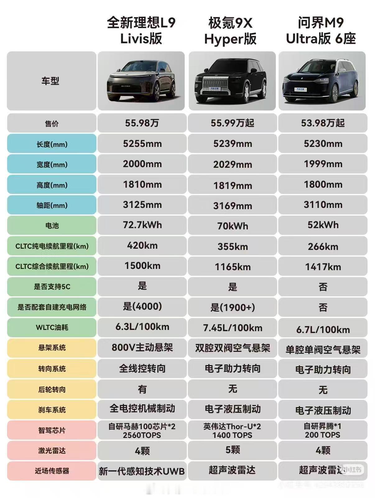 有一说一新款理想L9产品力蛮狠的,主动悬架都上了 ,电池都干到了72度…外观造型也大气不少。
